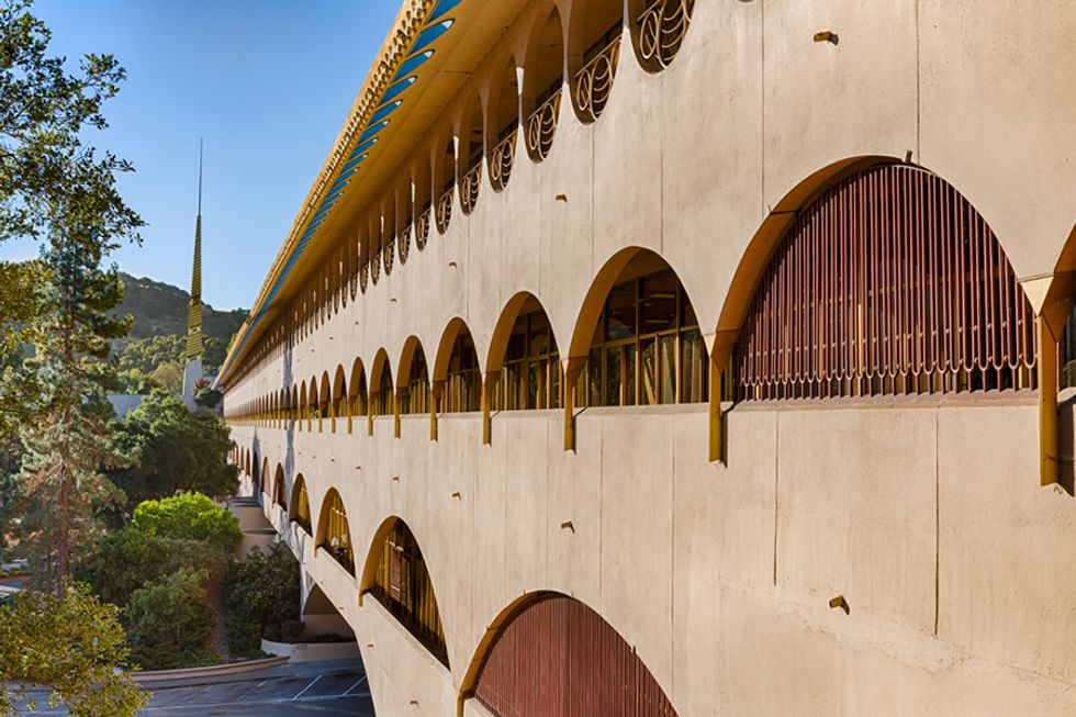 The civic center is comprised of two long buildings—the Hall of Justice and the administration building, linked by an 80-foot dome. Its elegant simplicity is a hallmark of Wright's work, and the Marin County Civic Center remains one of the most remarkable examples of his genius.