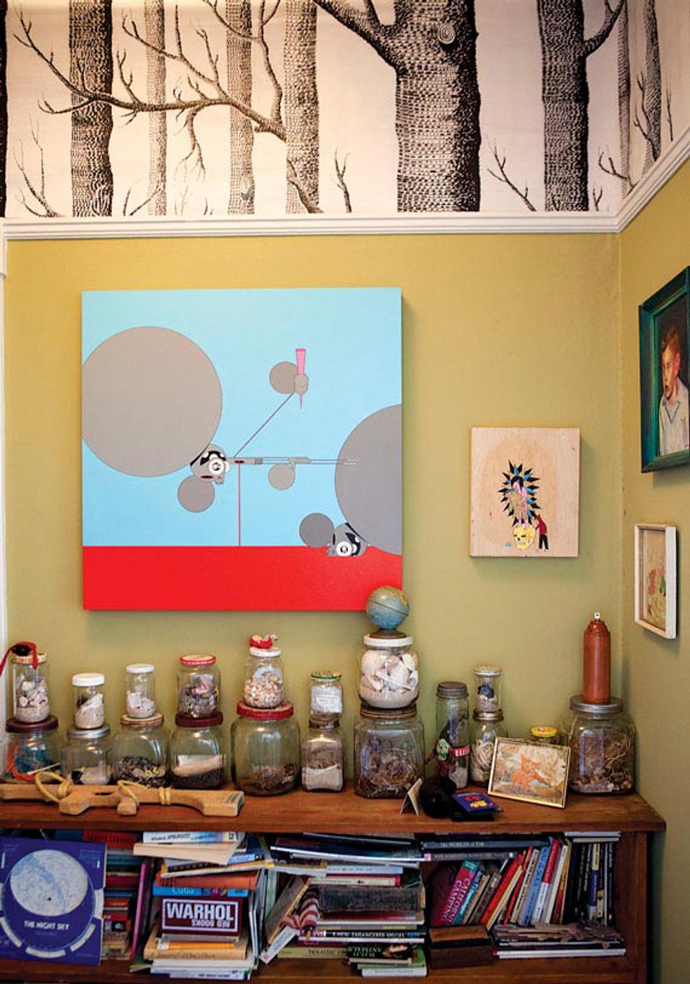 3. "I like to hold onto moments in a tangible way," says Ramos, whose glass-jar memories include beach sand from vacations in Cape Cod and Tulum, a hummingbird’s nest (a relic from the summer of 2006), and small bits of a Christmas tree from 2007, the couple’s first holiday in the apartment.