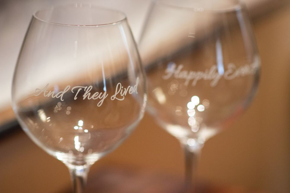 "Our first look was the most special part for us," says Kristy, who had debated on whether to incorporate this non-traditional aspect. "We are so glad we did," she says, remembering how Michael had surprised her with a bottle of wine and two specially engraved glasses to calm her nerves before the ceremony.