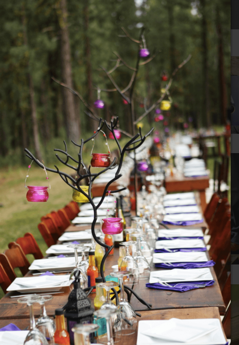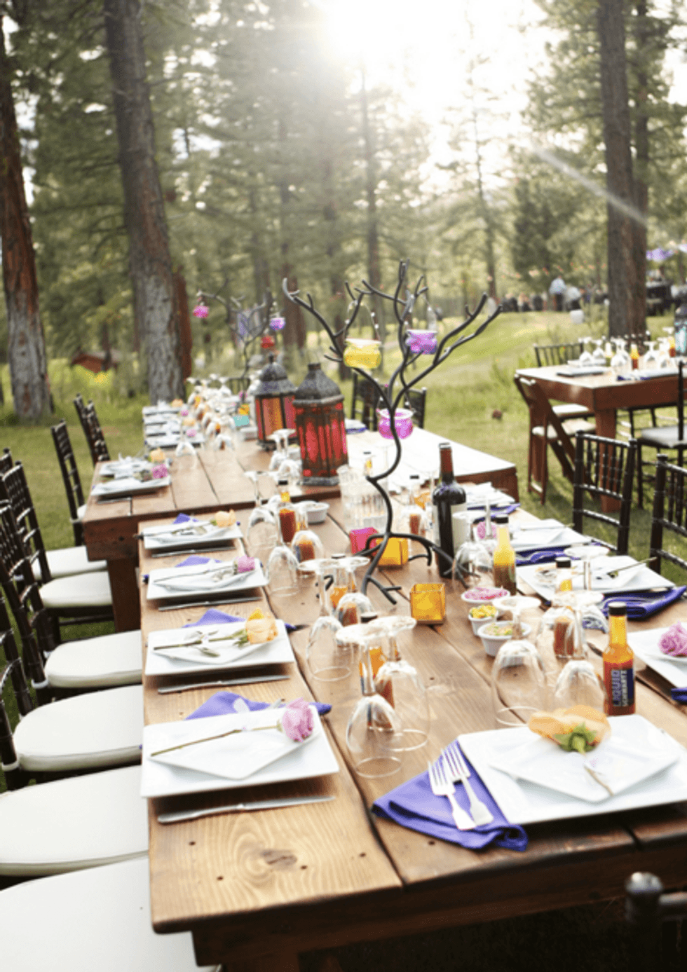 The lush plains of the Chalet View Lodge had plenty of space for an outdoor dinner party brimming with rainbow treats and funky decor. The wedding party made a night of it in rented Airstream trailers and teepees.