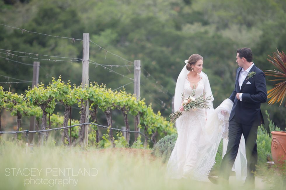 The Holman Ranch and Vineyard, located on the Monterey Peninsula, was the picturesque location for the union of two families. The couple described the venue as a perfect complement to their diverse backgrounds.