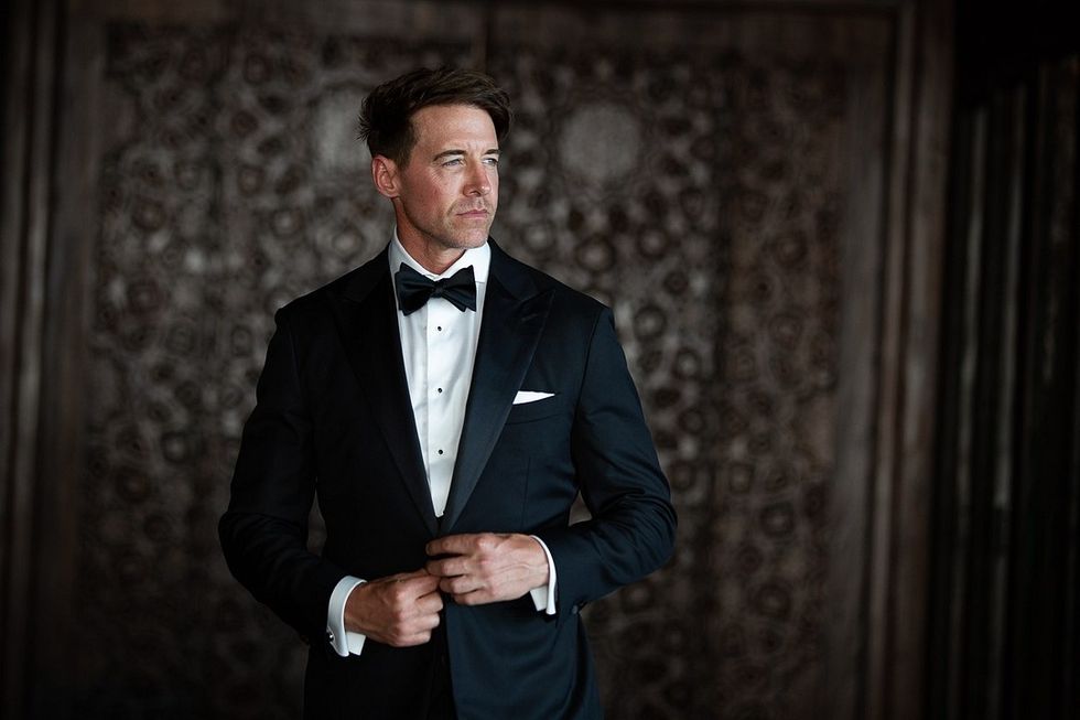 Classic was the name of the game when choosing their wardrobes for the big day: The bride wore a sparkling floor-length gown, the groom donned a handsome tux.