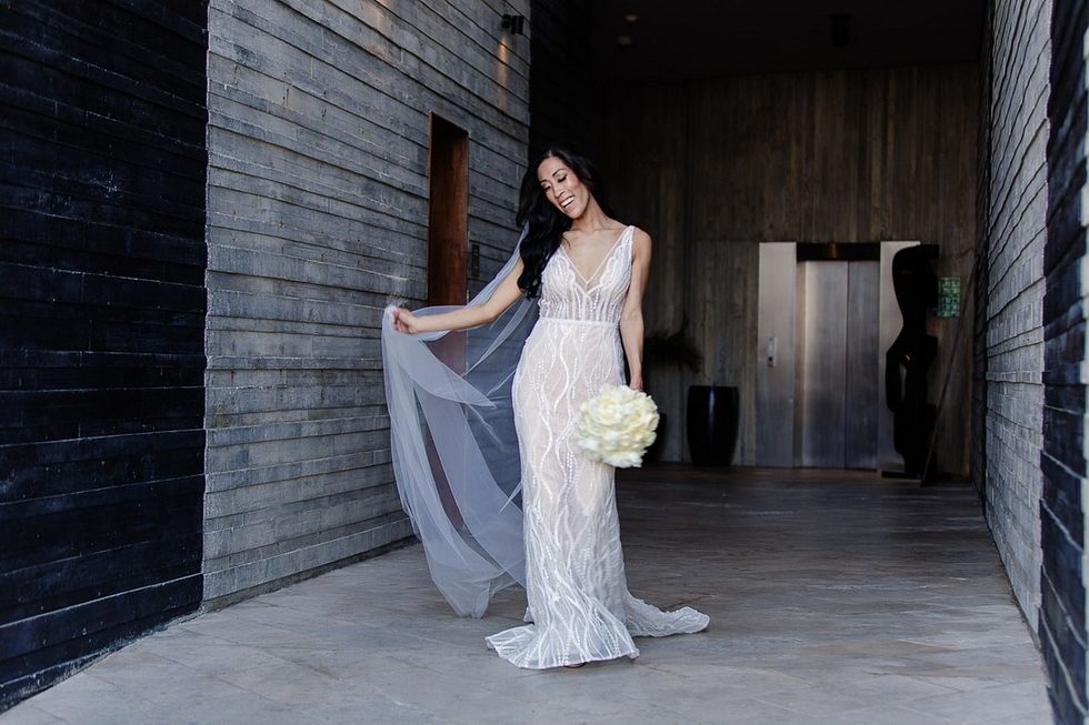 "I've always wanted to have a beach wedding, but I also wanted it to look very classic and timeless," says Jessica Dinh, who wed her sweetheart, Chris DiVecchio (she met him on Bumble, he proposed in Hawaii), at the stylish Cape Hotel in Cabo San Lucas.