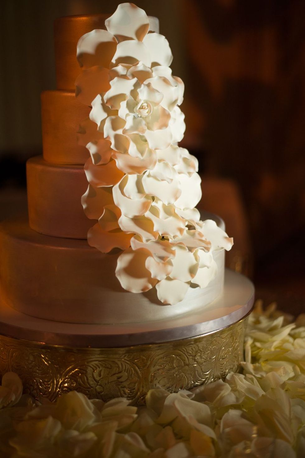 After cutting a trompe l'oeil cake molded to match the seasonal flowers that filled the room, the couple moved to the rotunda, where guests danced the night away against a backdrop of amber light and the city's iconic scenery.