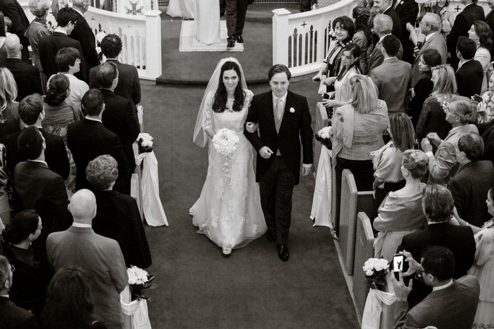 The bride walked down the aisle of St. John's Armenian Church in a stunning Priscilla of Boston lace gown, which the groom complemented with a custom morning suit. The ceremony was rich in traditions, including the time-honored Armenian ritual of crowning the newlyweds.