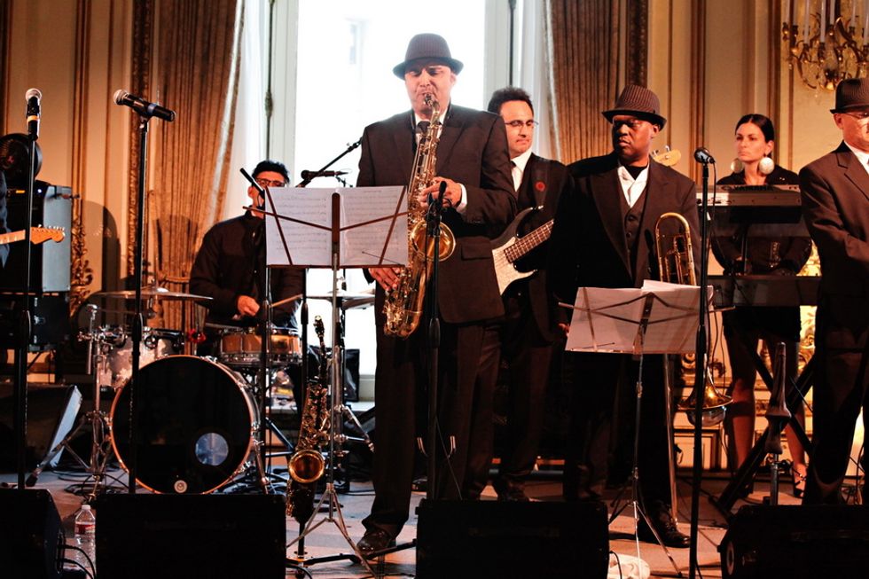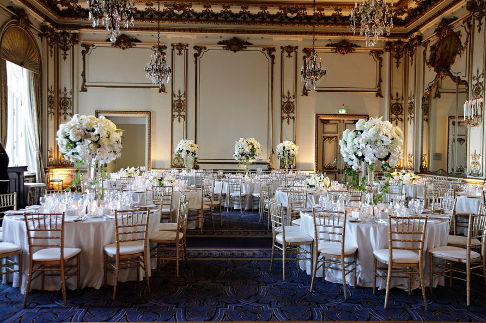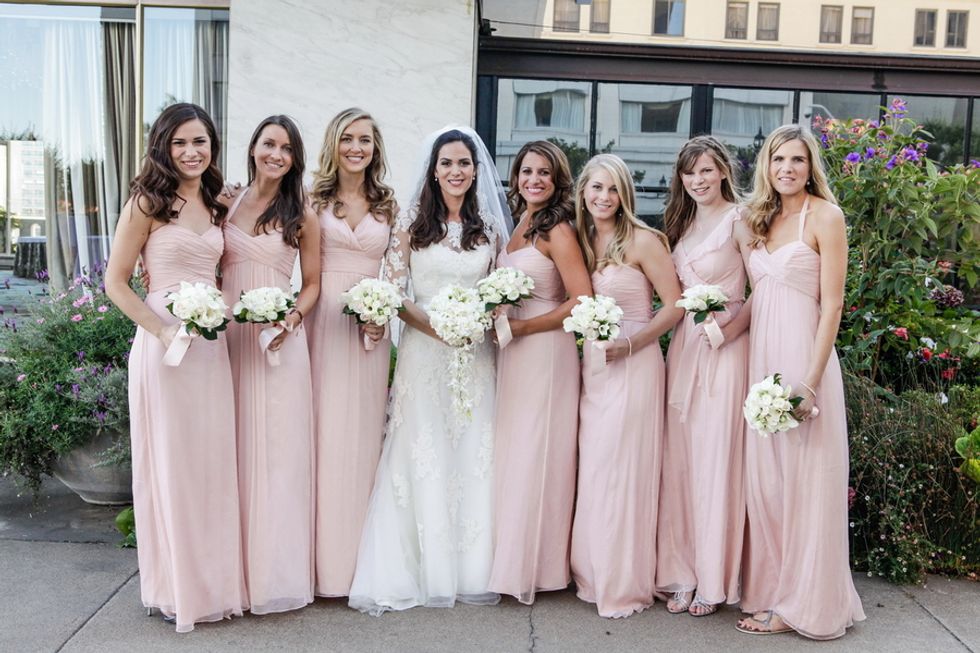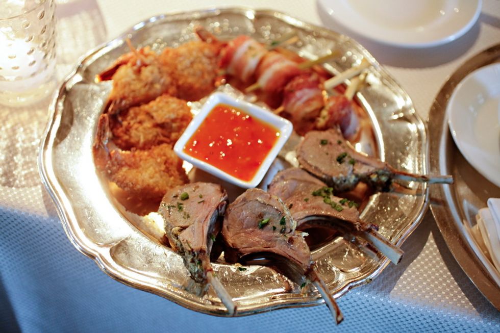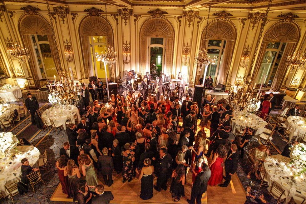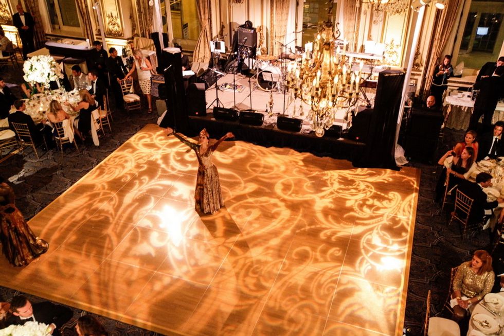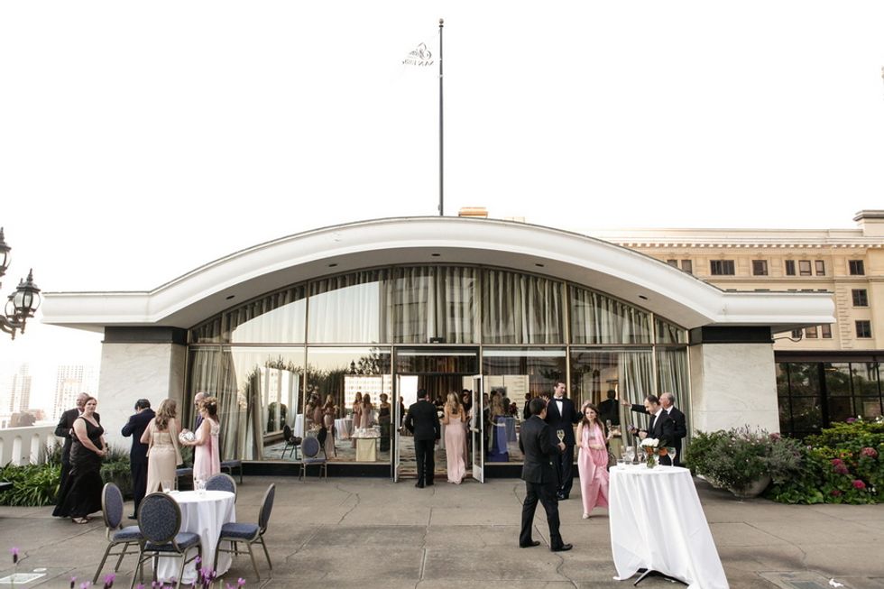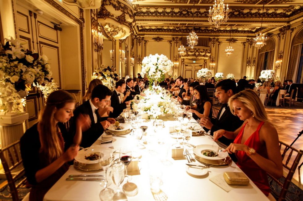 After the ceremony, guests ditched their black tie finery for cocktail-ready duds, and the wedding party made its way to the Fairmont San Francisco's garden terrace. As dinner began in the Fairmont's Gold Room, both fathers gave loving speeches amid the lush white flowers and mirrored walls. While family and friends dined, a traditional Armenian dance troupe entertained the guests with five folk dances. Then it was the bride and groom's turn on the dance floor, and they followed the first dance with many more Armenian and American hits.