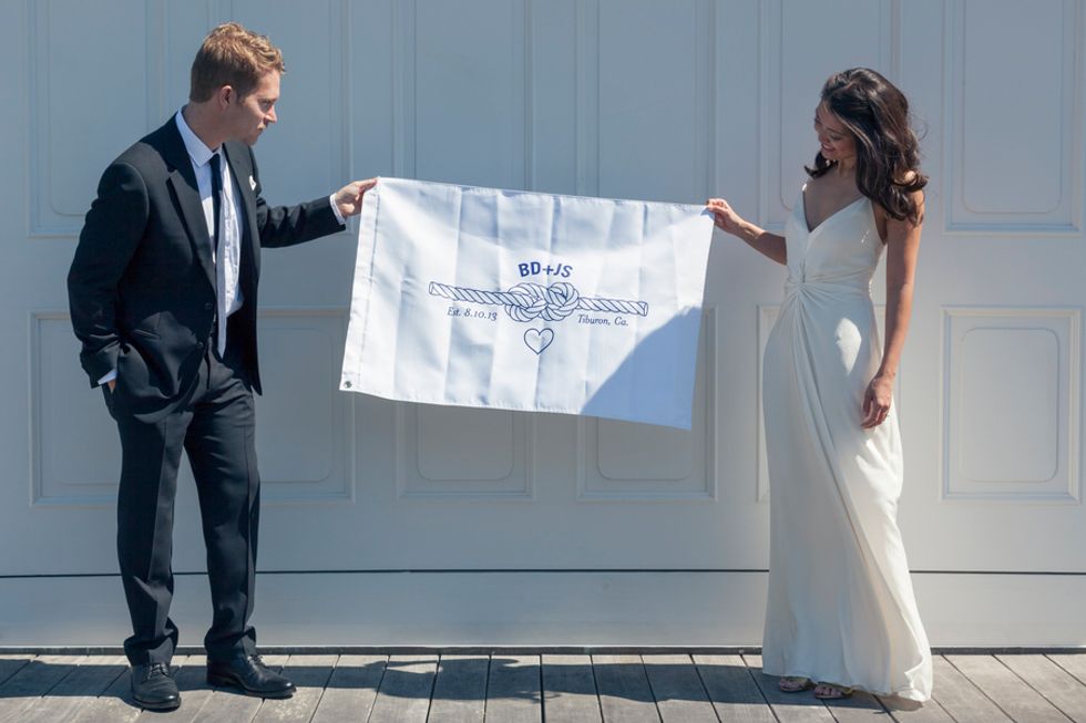 New Yorkers Joy and Brad crossed the country for an elegant, nautical wedding on the bay with a historic twist.
