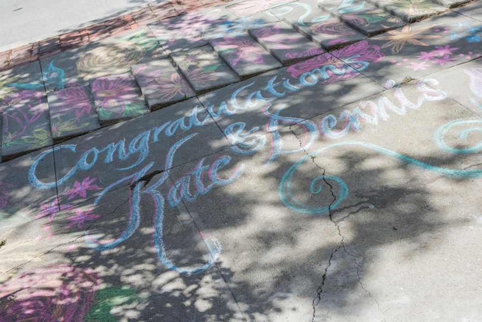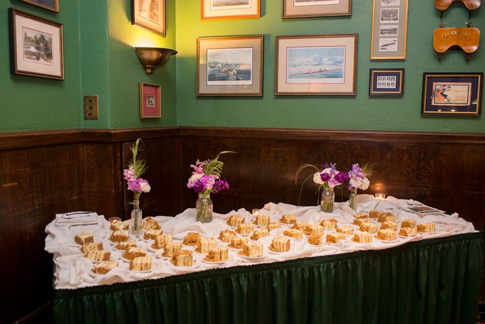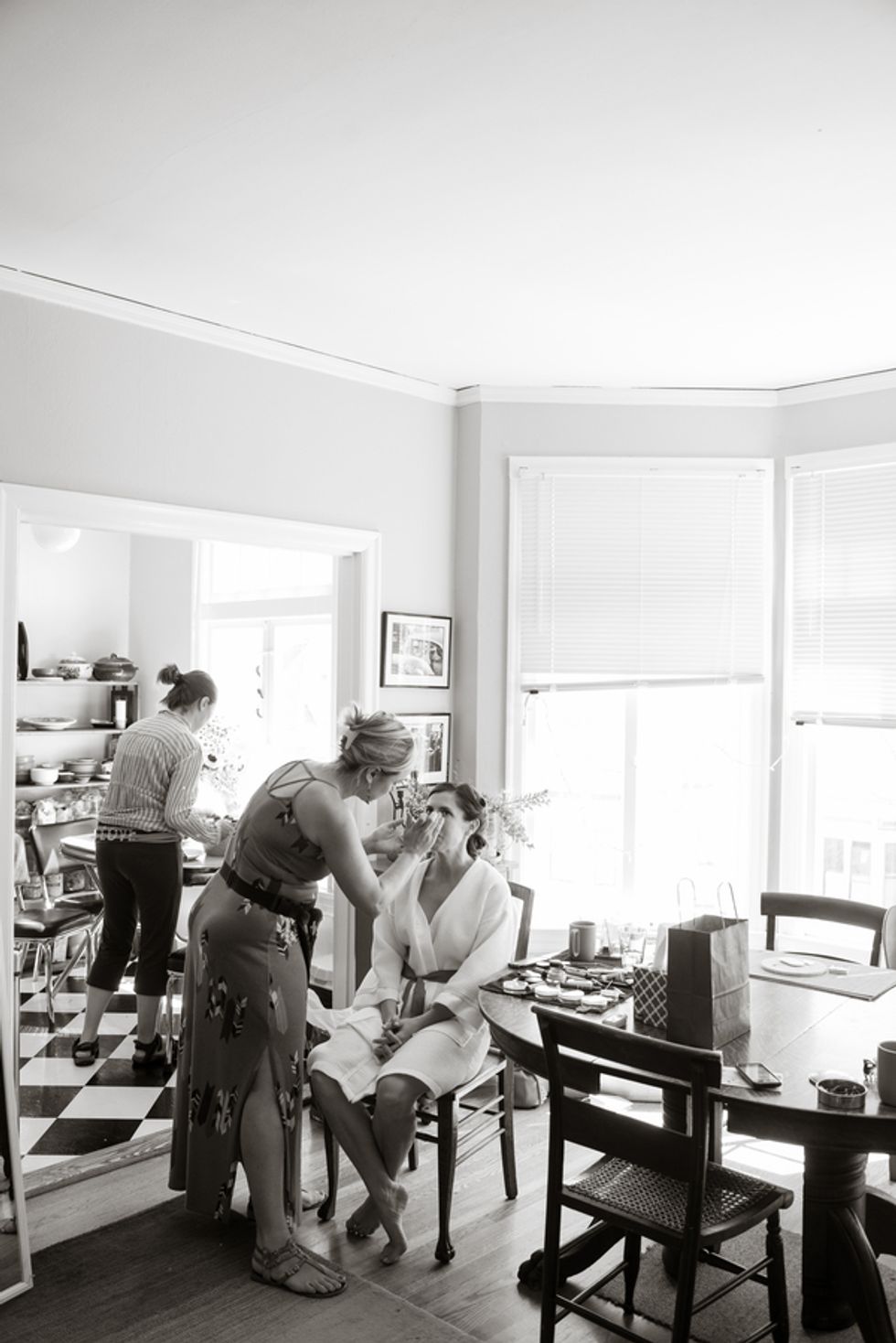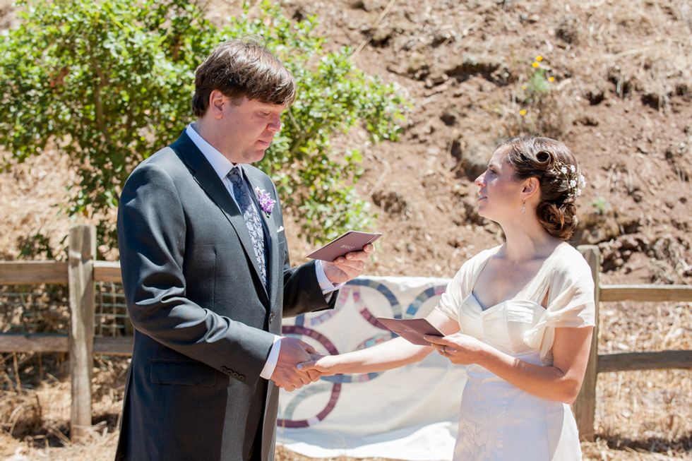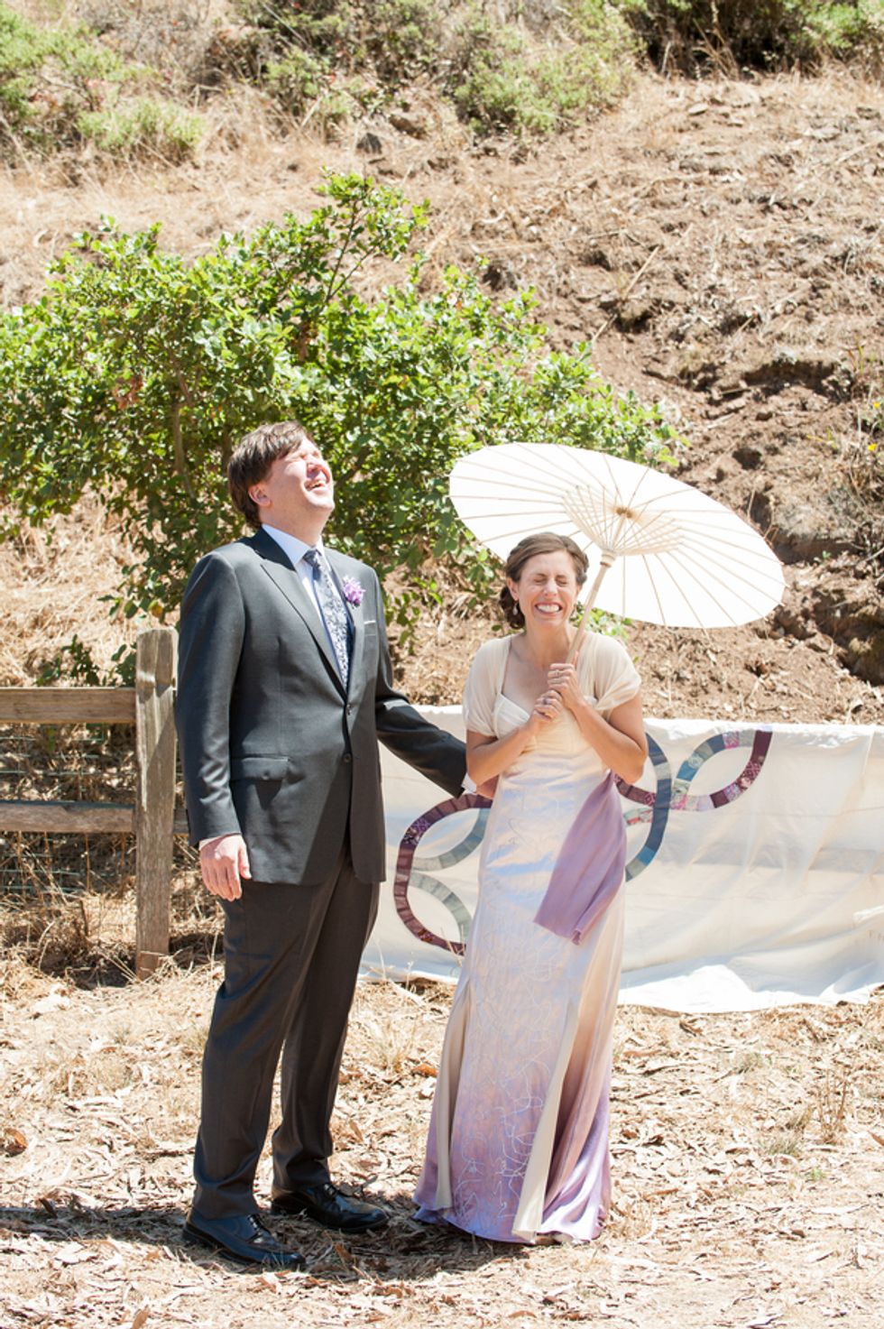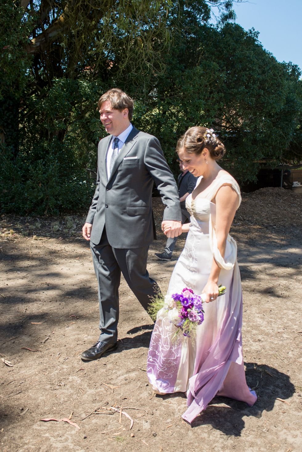 From the ceremony, the guests were ushered to the top of Corona Heights Park for gorgeous views of the city, and then on to the University Club, where the reception proved to be a real party: Kate's family sang “Our House" to cement the union, Dennis' brother used a line from Prince in his speech, and the vows included a moment of silence to contemplate nature. And then, as a surprise to everyone but the couple, a brass band burst into the space and led the guests downstairs to dance the night away.