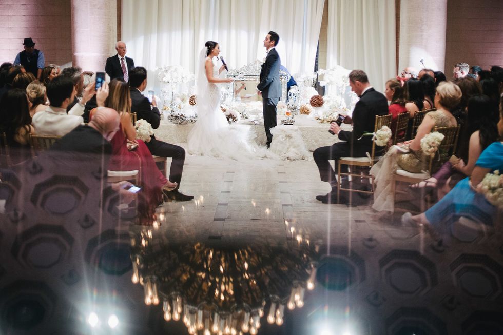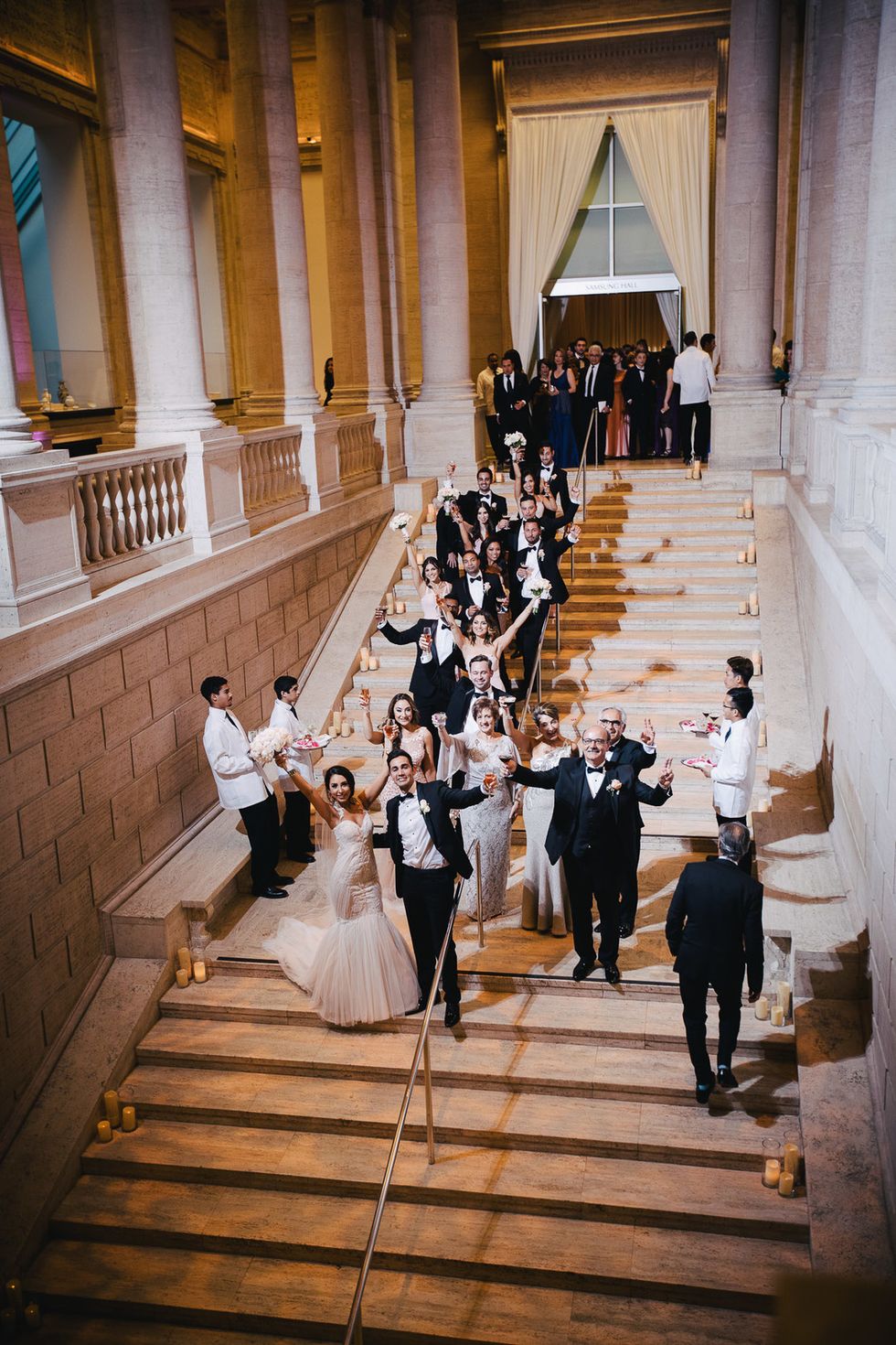 Naturally for their big day, more traveling was involved. They, along with family and friends flew to San Francisco to tie the knot at the Asian Art Museum. They gathered at the Fairmont Hotel to get ready with their wedding party to prepare for a night of classic romance and tradition. The bride was adorned in a stunning mermaid gown and Dior heels, while the bridal party wore different variations of floor-length gowns. The men all sported Hugo Boss tuxedos.