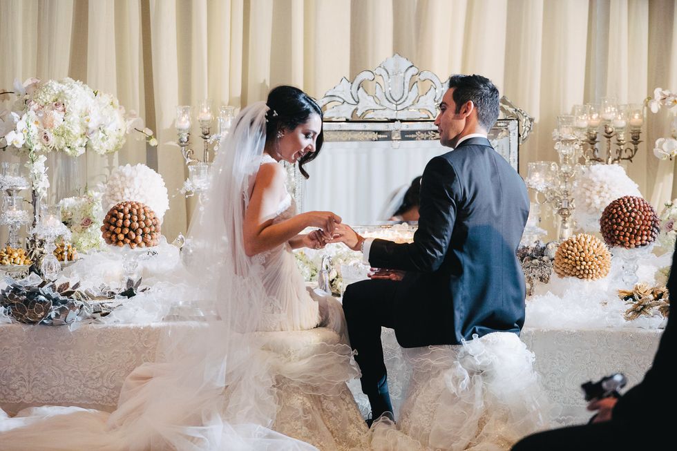 Negeen Pejooh and Paul Di Guglielmo met while she was on a girls' weekend from Los Angeles, and he was on holiday from Melbourne, Australia. Unsurprisingly, they met at a club. He turned, saw her, and knew. Continents apart, Pejooh and Di Guglielmo spent three years in a long distance relationship while she stayed in California to finish law school. Then, when she finished her degree, he was transferred to Singapore and she took a leap and moved. From there they traveled around Southeast Asia for two years. It was on an afternoon in their bungalow on the water in the Maldives, however, that he got down on one knee.