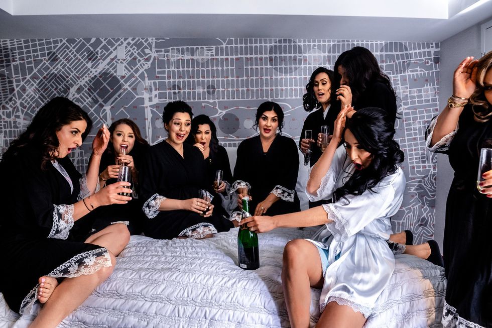 Kazimi and her tribe of bridesmaids got ready at Battery Street's Le Méridien Hotel in a room with sweeping views of downtown. A couple of floors down, the groom was exchanging gifts and toasts with his buddies.
