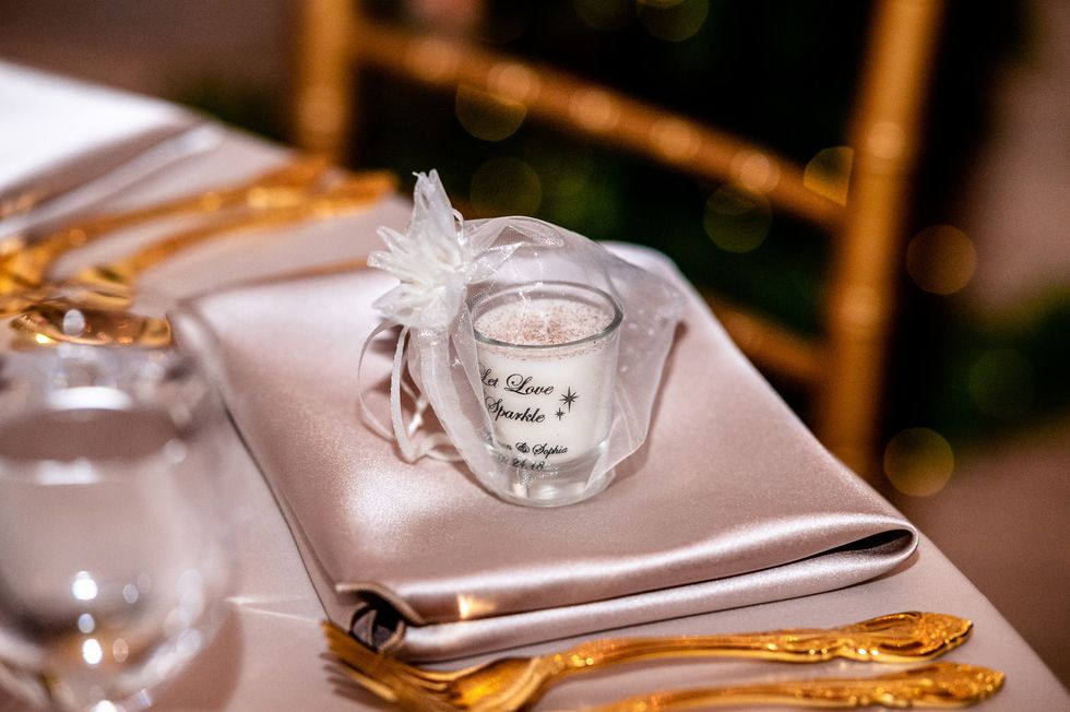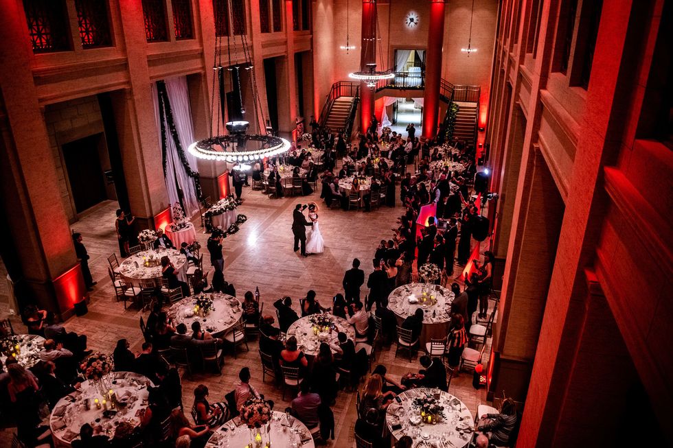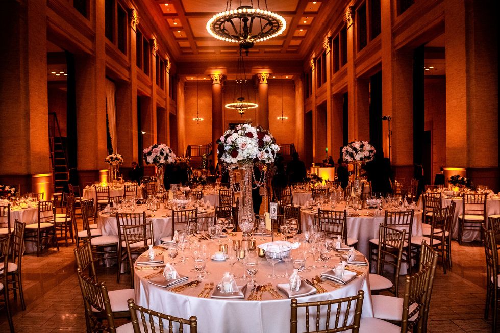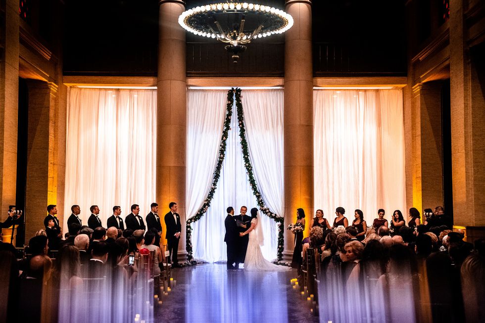 Their venue, the opulent Bentley Reserve, was just steps away. With its soaring ceilings, marble floors, intricate columns, and glittering chandeliers, the Beaux-Arts building—both a San Francisco and a national historic landmark—would have befitted a royal wedding. It was here, beneath cascading ivory curtains and eucalyptus garlands speckled with white roses, that the lovebirds said, "I do."