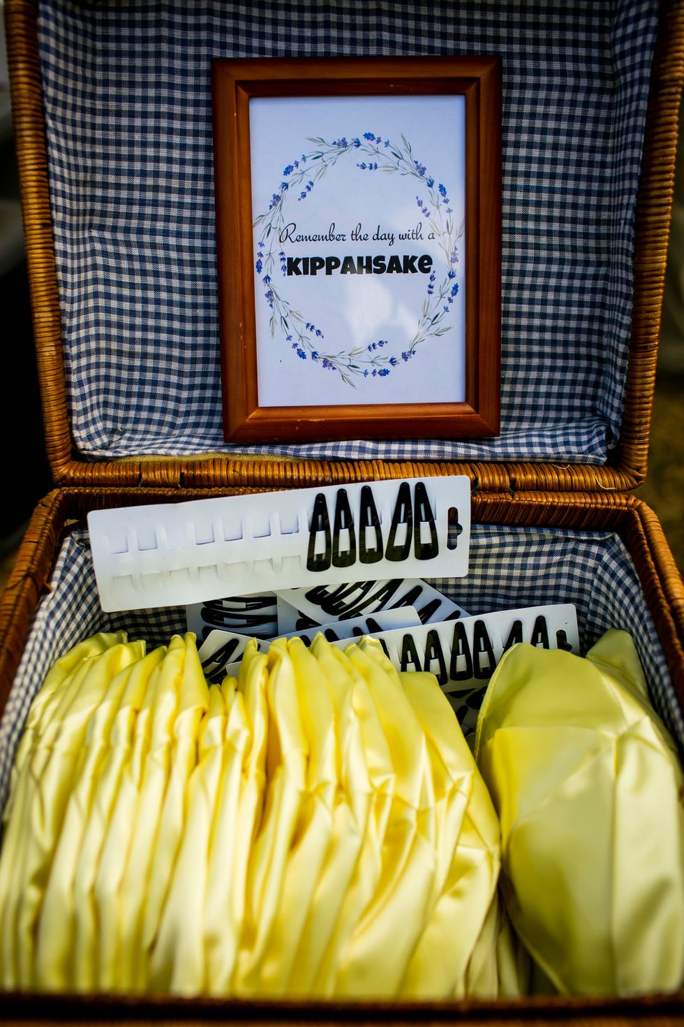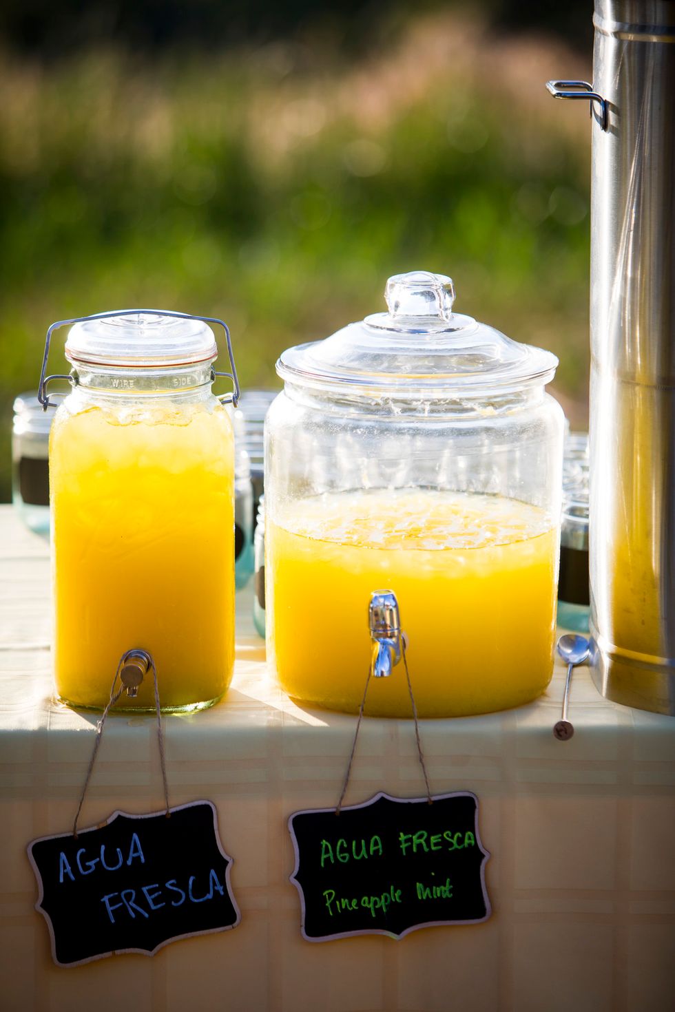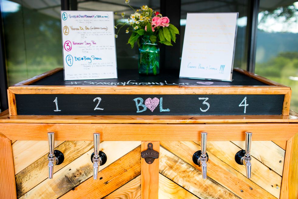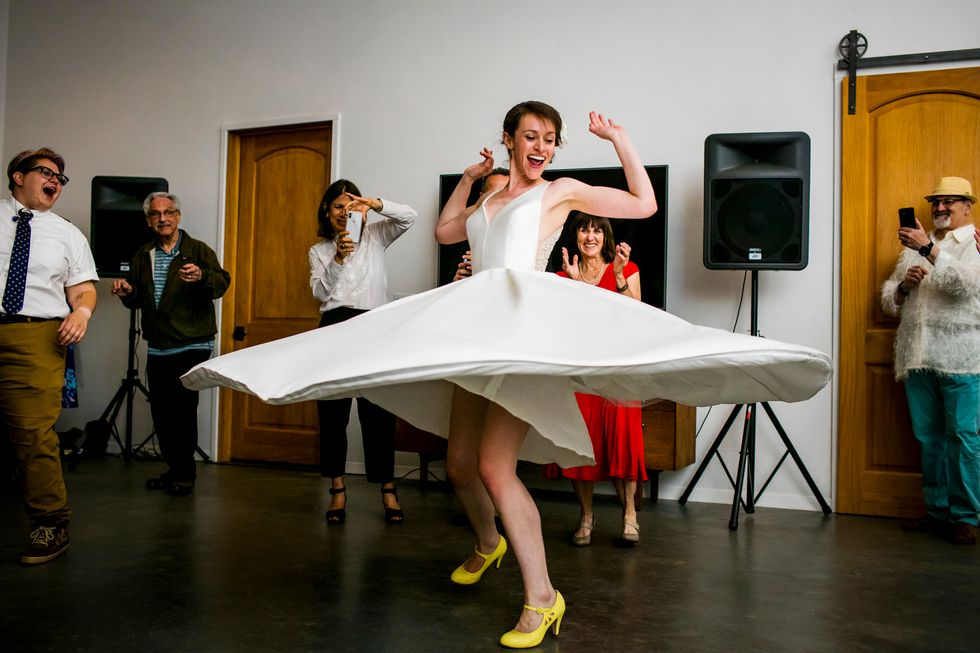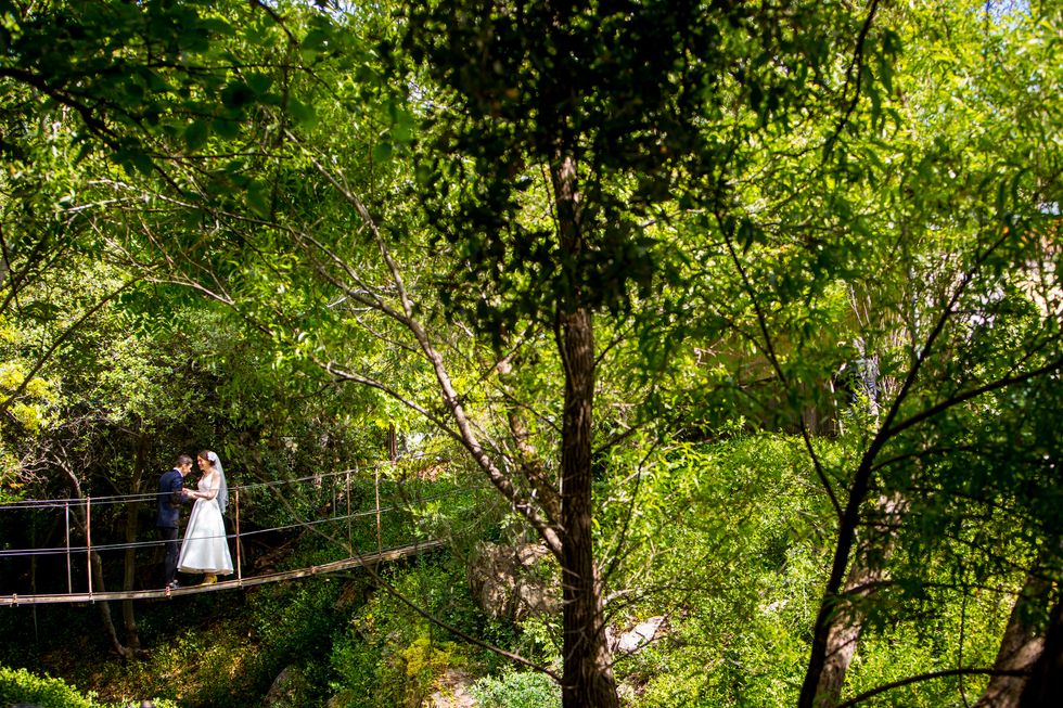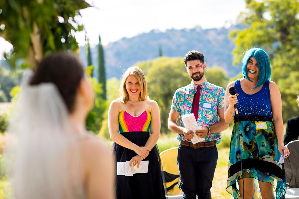 Traditional met quirky in their picnic-style bash with Jewish traditions including ketubah signing, the seven blessings, smashing the wine glass at the end of the ceremony, "yihud" (private time right after the ceremony), and horah dancing; and an eclectic assortment of personal touches and colorful attire. Following yard games and bubbles, the bride carried a pineapple down the aisle to a birch arch, adorned with lush foliage. A "seeding chart" showed guests to their blanket or table where they noshed on vegan Mexican fare complete with fresh agua fresca. Their friends also baked for several days to present a sprawling spread of pies and desserts. While the dance party began outside with sparklers, they took it indoors—along with the pastries—once the sun went down.