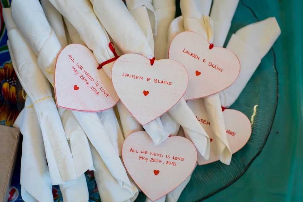 Nearly all DIY, they labored to put together the celebration of their dreams. There were handmade signs, vases of flowers with bright blooms, and sweetheart-shaped napkin ties with names and the date of the wedding.