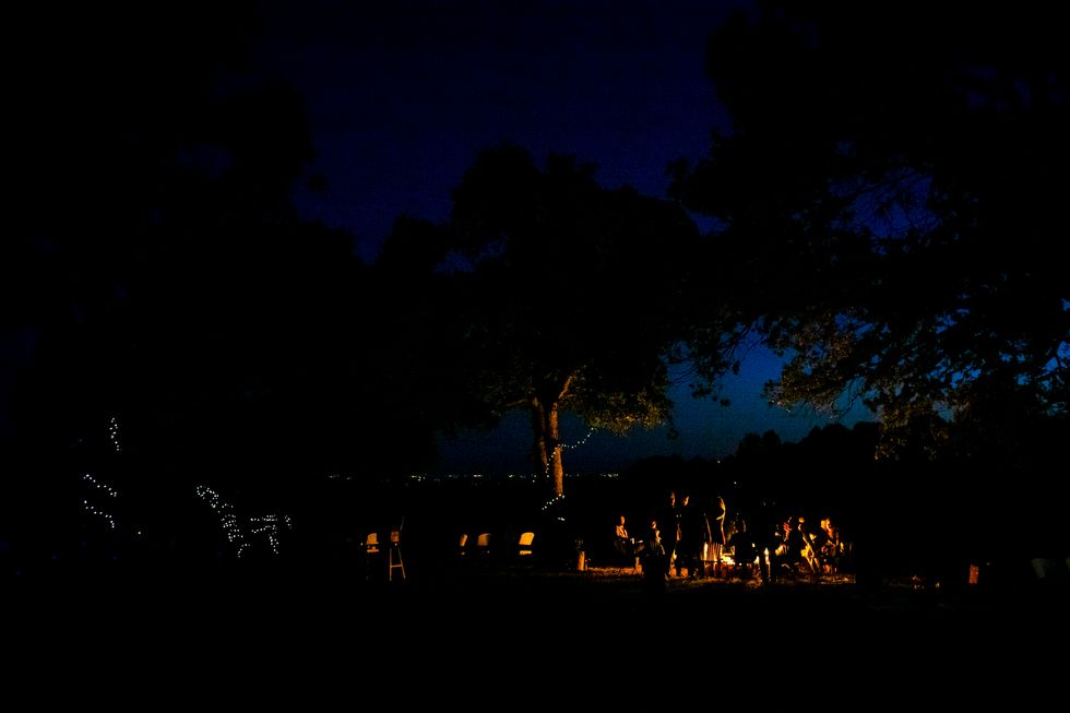 Finally, the newlyweds capped off the night with loved ones around a campfire amid a grove of trees.