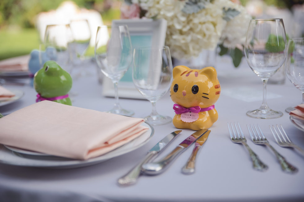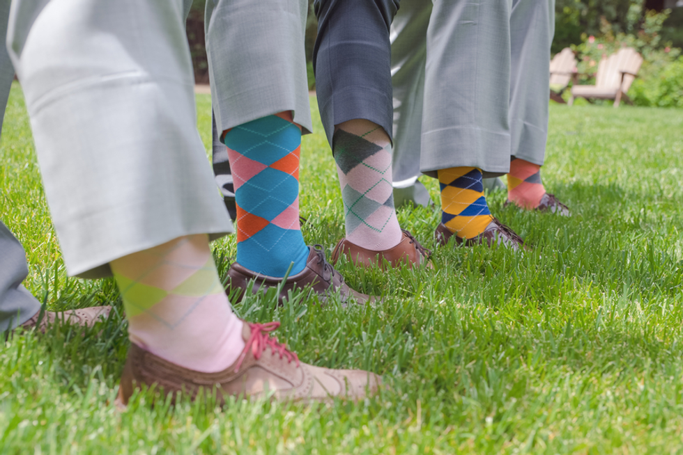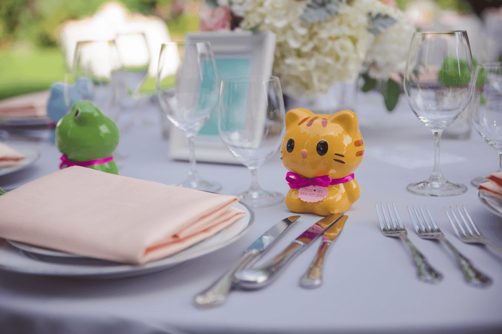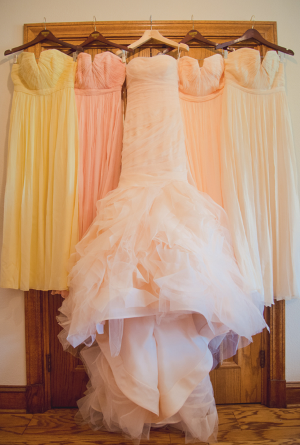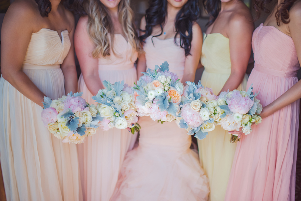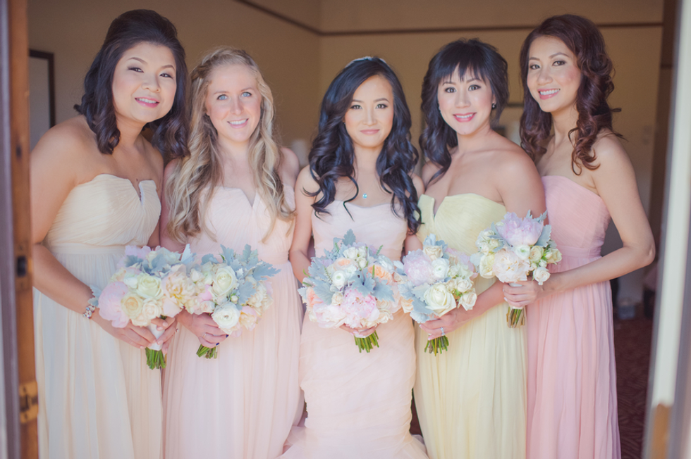 Pastels were the palette of the day: Nhi wore an pale pink gown with a tulle mermaid train, while the groom and his pals sported colorful checkered bowties, pastel pocket squares, and vibrant socks.