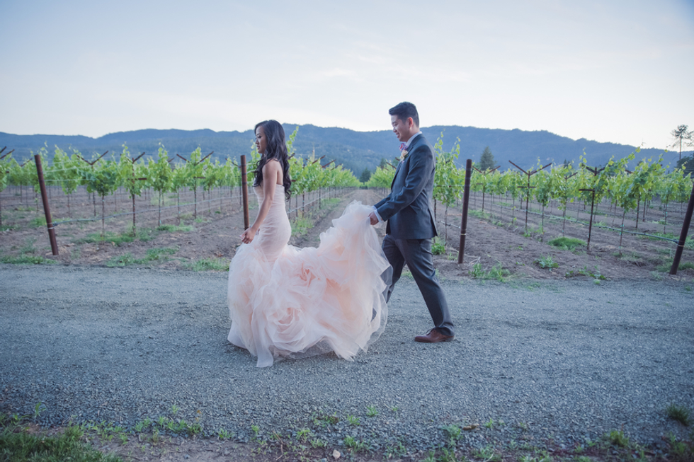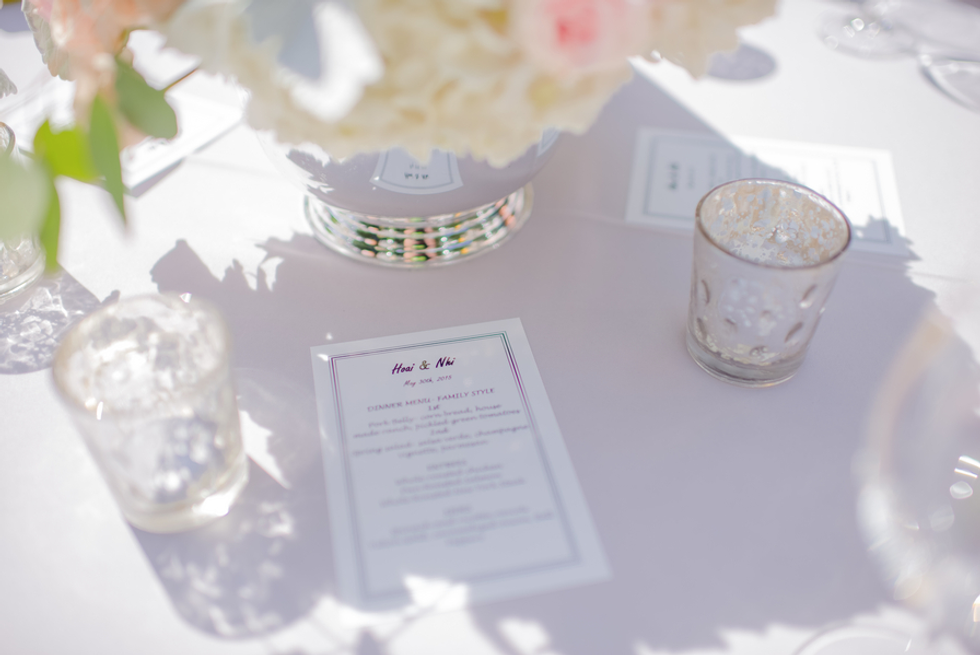 A long time in the making (even for ones so young!), Nhi and Hoai's special day went down at Wine Country's scenic Harvest Inn, surrounded by redwoods and lush landscape. The festivities, including the ceremony, a cocktail hour, and reception, were spread across three different sites.