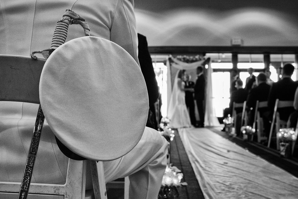 While both stationed in Kodiak, Alaska, active duty Coast Guard pilots Allison and David met over a competitive arcade game one evening in the winter of 2011. After dating for three years, they revisited Kodiak on a mountain hike, where David popped the question against a misty backdrop overlooking the town where they met.