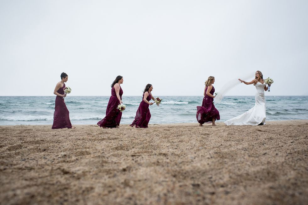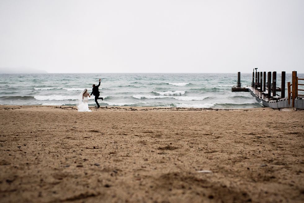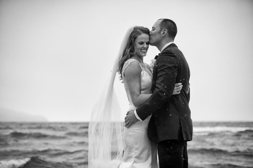 Since Allison is from Colorado and David hails from Southern California, Lake Tahoe was the perfect mix of mountains and water. During a small, intimate ceremony in the resort's lake view ballroom, while snow flurries gently drifted down behind them, Allison and David said "I do." The elegant-yet-rustic wedding was perfectly complimented by local vendors and homemade touches, like the handmade arch under which they were married, made by the father of the groom. The snowy day in March lent itself to some amazingly romantic and unique winter wonderland photos.