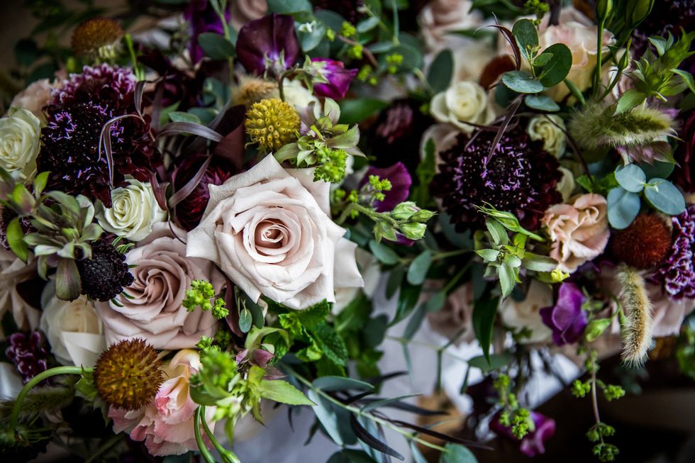 "I kept our colors neutral—shades of blush and dusty pink for the bridesmaid dresses, groomsmen in classic black tuxes, white table cloths and menus—and let the natural beauty of Cornerstone come to life," says Severe.