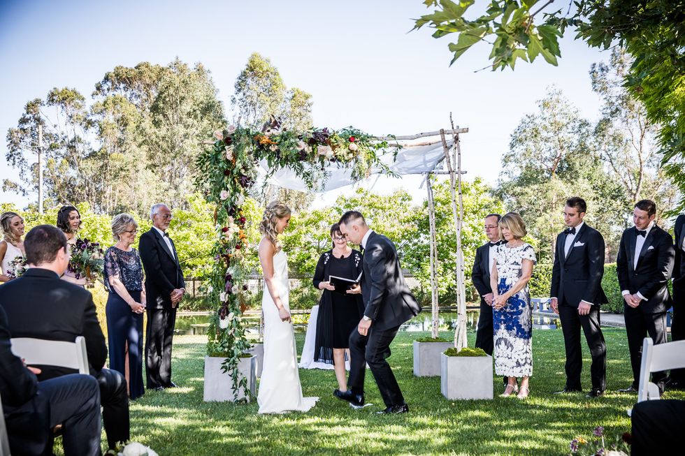 If you can envision styling a Sonoma garden with furnishings from Restoration Hardware and California eucalyptus, then you can imagine the sunshine-y wedding of Sarah Severe and Stephen Shmitt, who returned from their native Chicago to marry in the place where they fell in love.