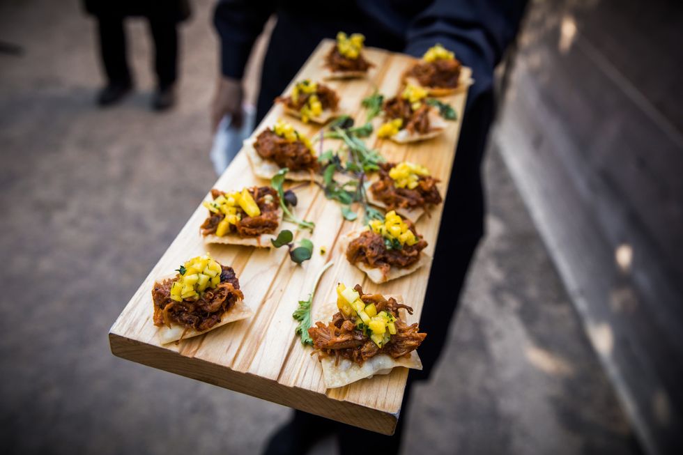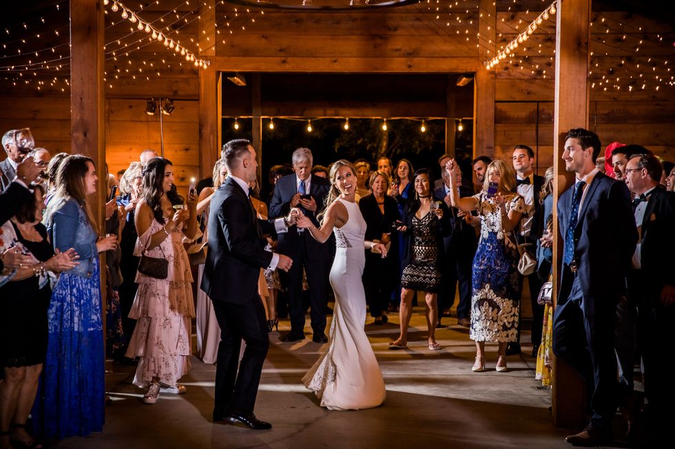 In true Wine Country spirit, they harnessed their inner foodies and went all out. "We had three different food stations with wine pairings at each for dinner. During the cocktail hour we had an oyster bar with a shucker." At the end of the night, they surprised guests with a dance they created (they had been taking lessons) and showed off their moves to "You Are the Best Thing" by Ray LaMontagne.