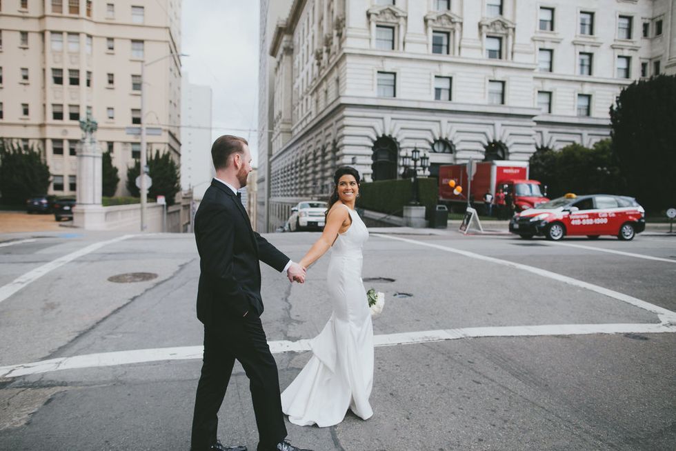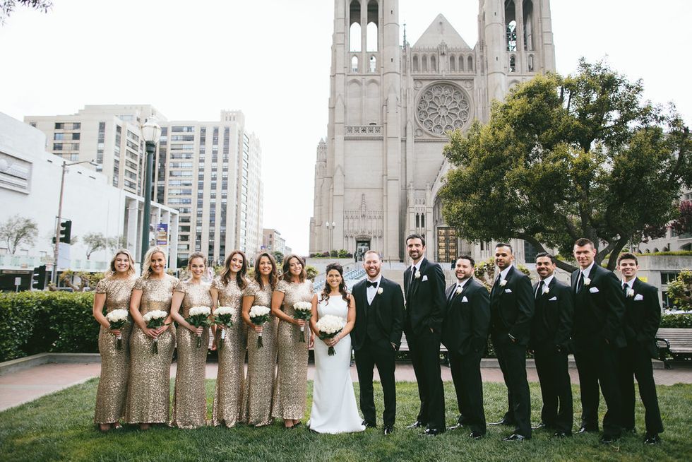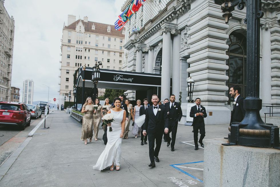 Welcome drinks were shared at Zeki's, the pair's neighborhood bar in Nob Hill; and farewell Irish coffees were served the morning after the wedding at the Buena Vista Cafe. But on the big day, only a suite at the Fairmont would do, where the group got ready for the ceremony while overlooking the city before catching some photo ops at Grace Cathedral as the cable car passed by.