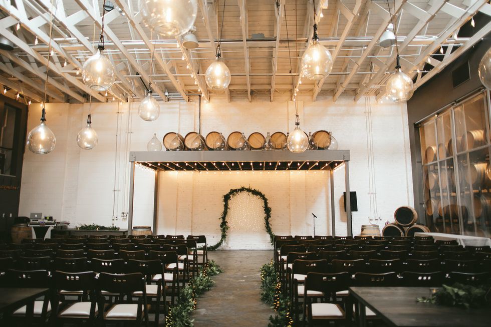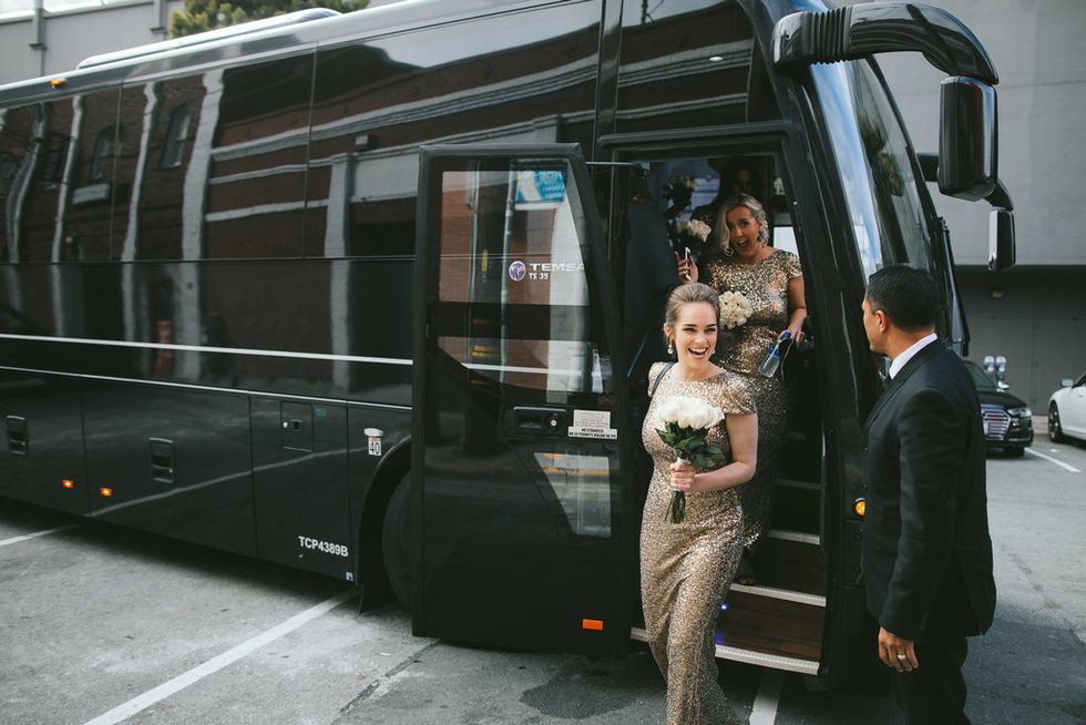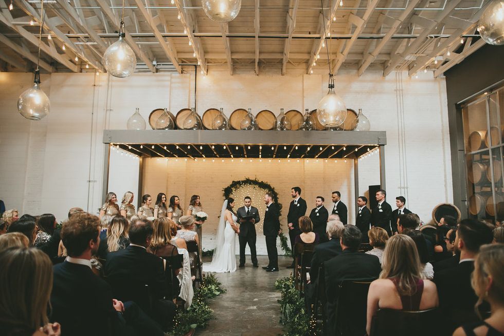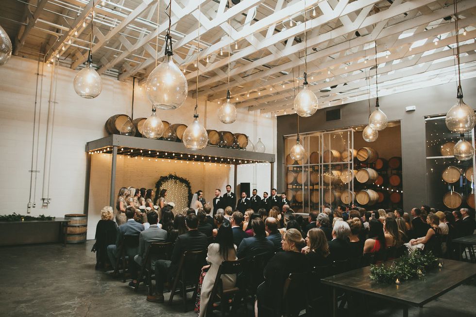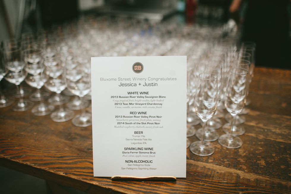 And then the party bus arrived and it was all aboard to Bluxome Street Winery, the venue of this couple's dreams. They fell right away for the SoMa spot's rustic decor, with its twinkling glass light fixtures reminiscent of vintage wine jugs and just enough space to accommodate all of their guests while still feeling intimate.