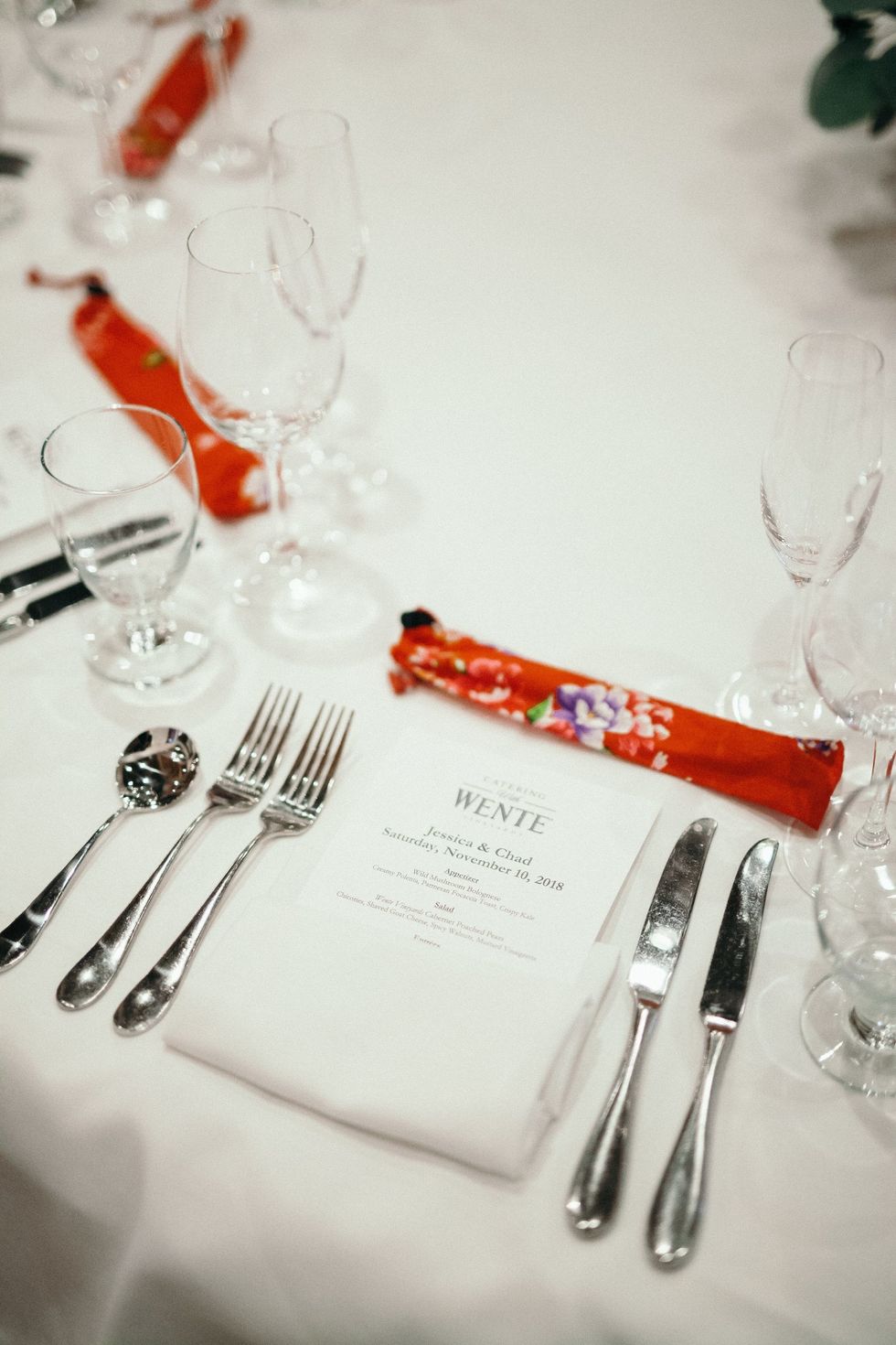 Wedding planning for these two was quite practical. They started by taking an inventory of what they liked and disliked about weddings they'd attended, and ultimately, two major themes arose: They wanted a lush setting, and incorporating Chen's Taiwanese heritage (into an otherwise Western-style wedding) was a must.