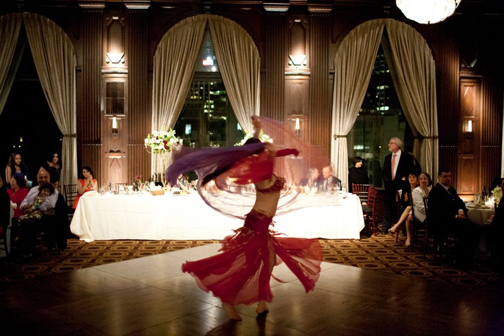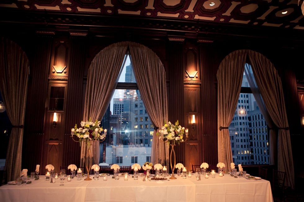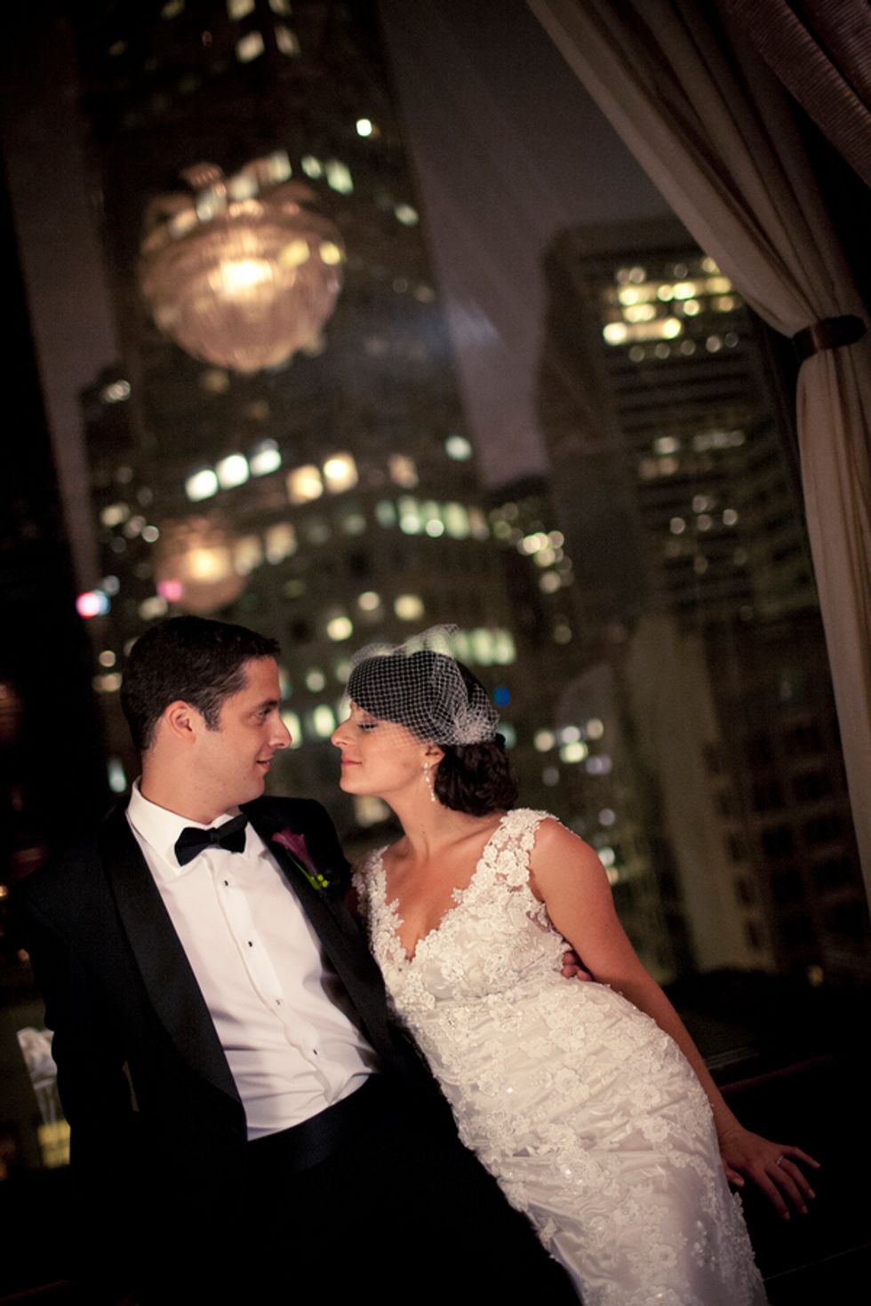 They both wanted to achieve the feeling and essence of the city. The reception was held on the top floor with ornate flowers and extravagant food in abundance. The party didn't stop until 2 am, as friends from near and far danced the night away!