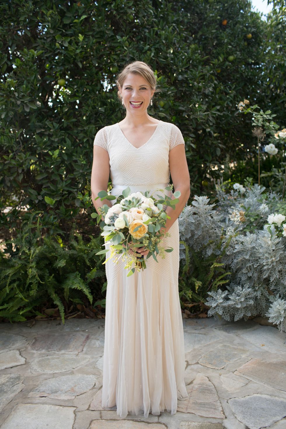 But when it came to the dress, Thornhill decided to go for glam in a 1920s-inspired gown. "I loved my dress. I actually found it on the way to happy hour in San Francisco about a month after Jon and I got engaged. I talked about the dang thing all night and walked myself right back to the shop and bought it the next day." On her wedding day, she channeled Grace Kelly, keeping her look simple and elegant with a side-swept bun. Her bridesmaids chose their own complementary blush-hued frocks.