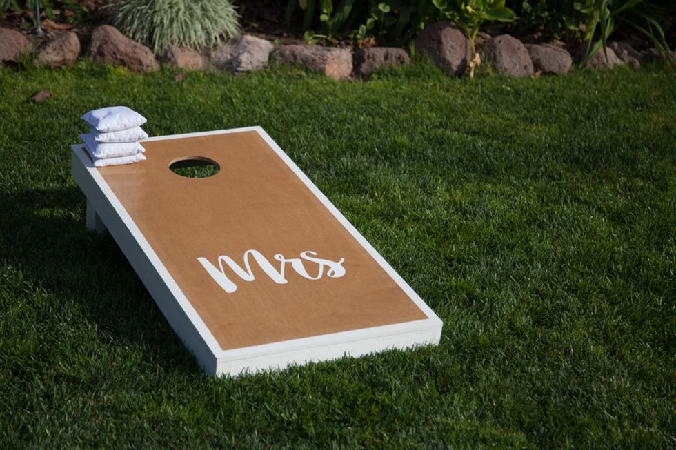 The welcome sign, altar, and corn hole boards for cocktail hour were also all handmade.