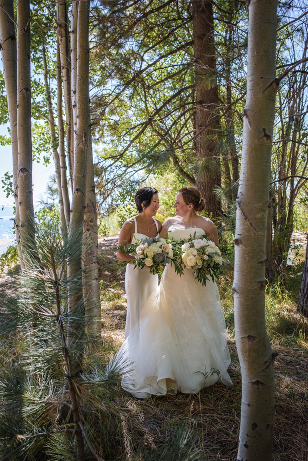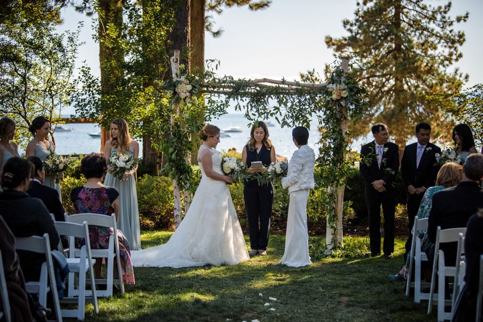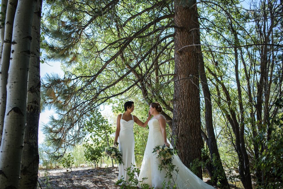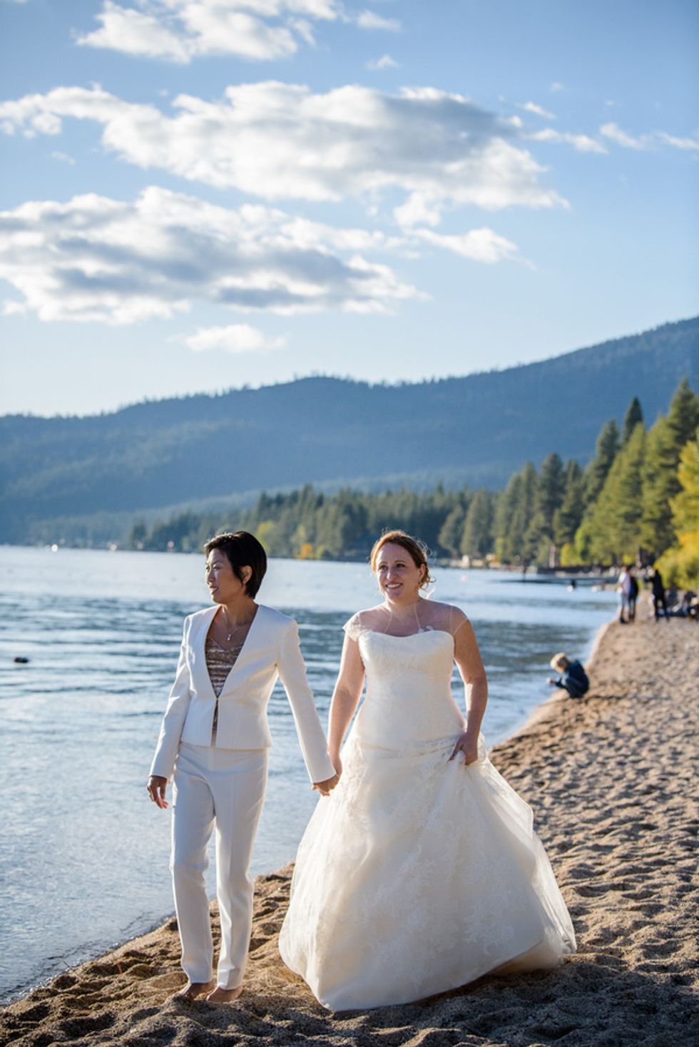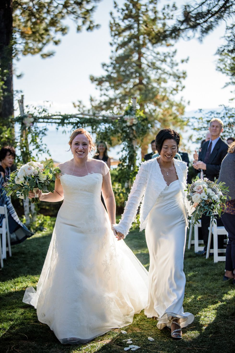 Christine Hwang and Abigail Clark met on a dating website, but were friends for months before a romance began to blossom. When it did, Hwang proposed to Clark with the help of a guitarist outside of Zuni Cafe, where they had gone on their first date. This was actually a backup plan as Hwang initially wanted to propose by song at Martuni's (a piano bar across the street), but "chickened out."
