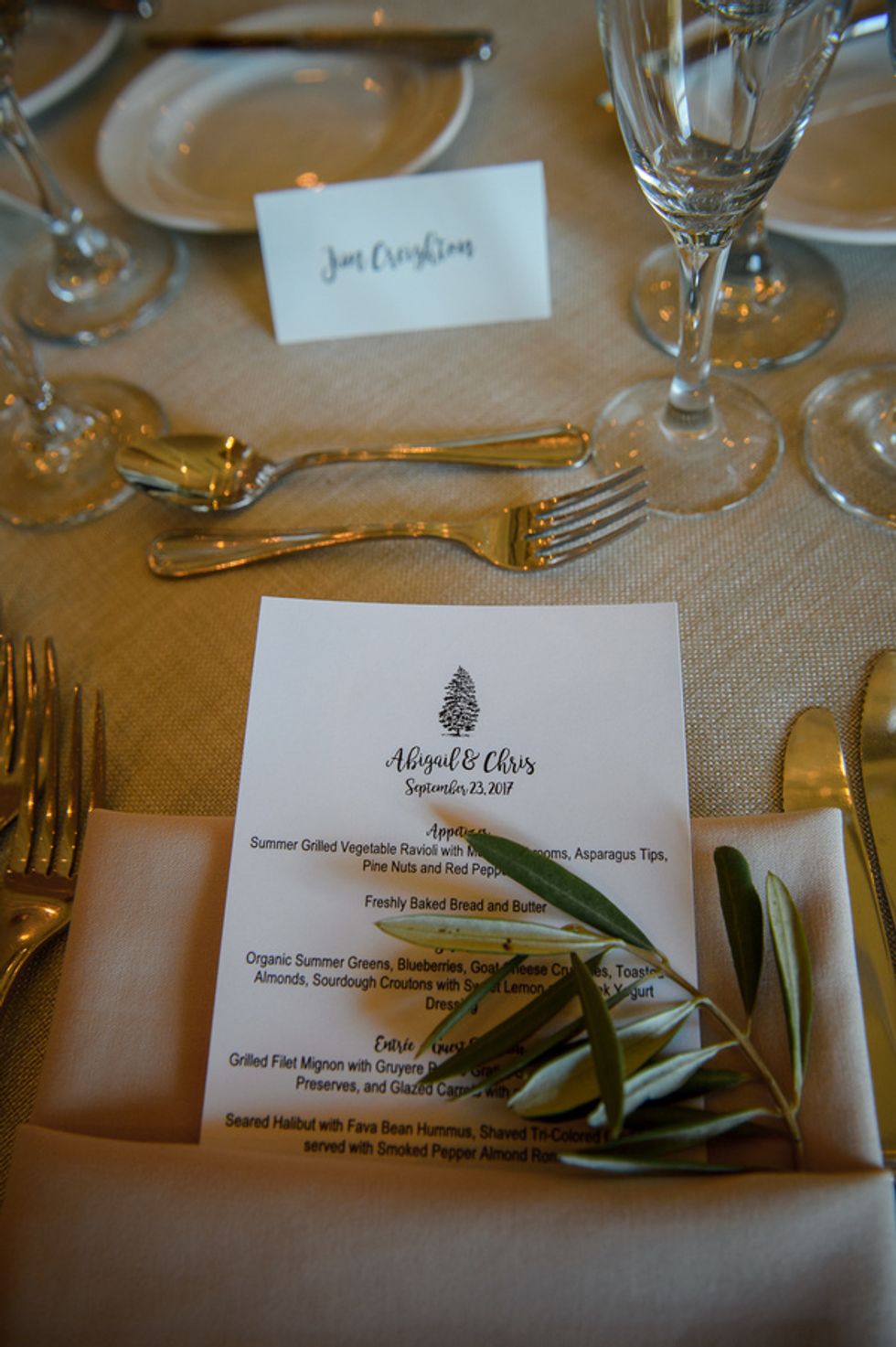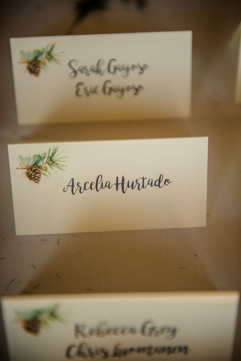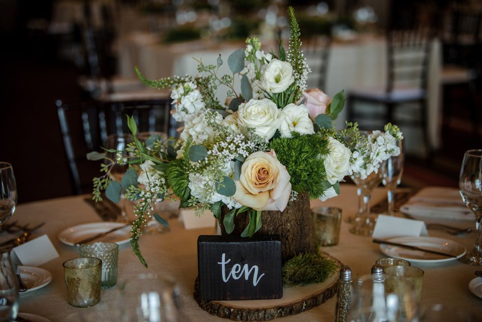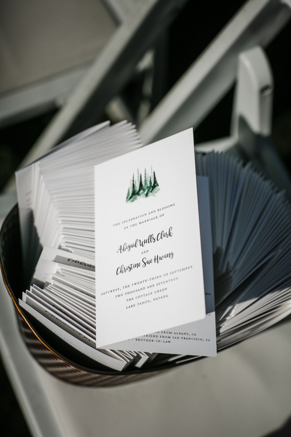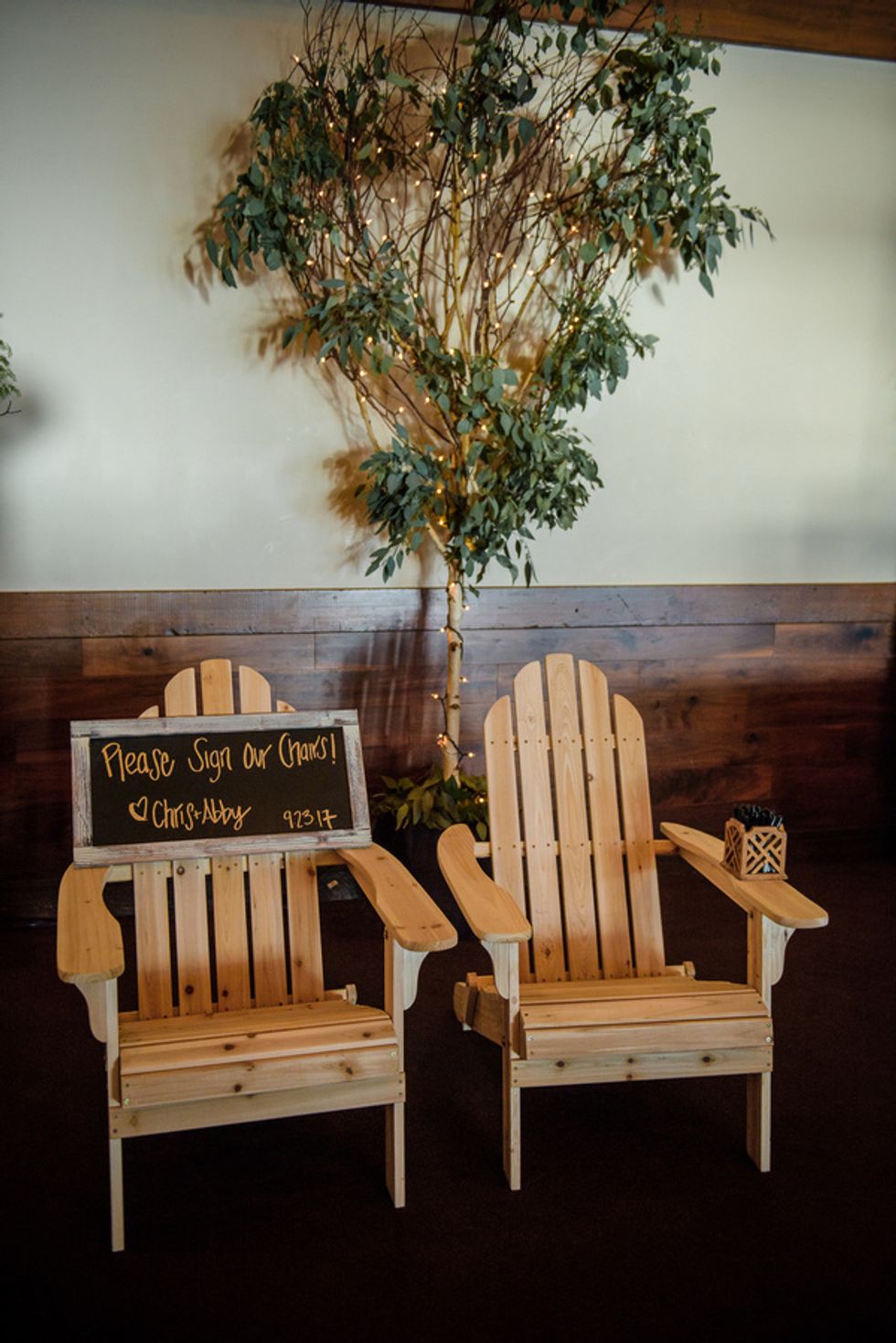 Despite the camping theme, Hwang and Clark put together elegant rustic details that they wanted to be more down to earth than glitzy. They incorporated a few DIY elements such as having guests sign Adirondack chairs that they assembled in their hotel room, and a natural tree logo reminiscent to the Dartmouth lone pine symbol; which they put on the welcome bags they assembled.
