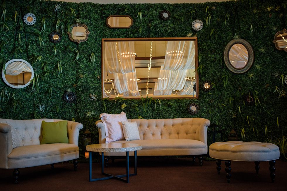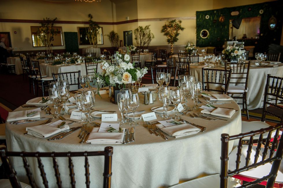 "We were looking for a venue that felt like Alford Lake and Dartmouth on the West Coast. The theme for the reception was bringing the outdoor and community feeling indoors."