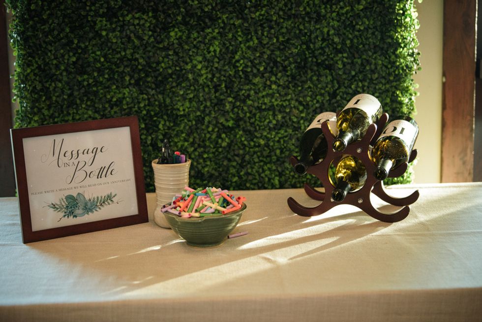 "We also wanted support and guidance from those who went before us in marriage and created labeled wine bottles for people to leave messages for us to read on our 1st, 5th, 10th, and 25th anniversaries."