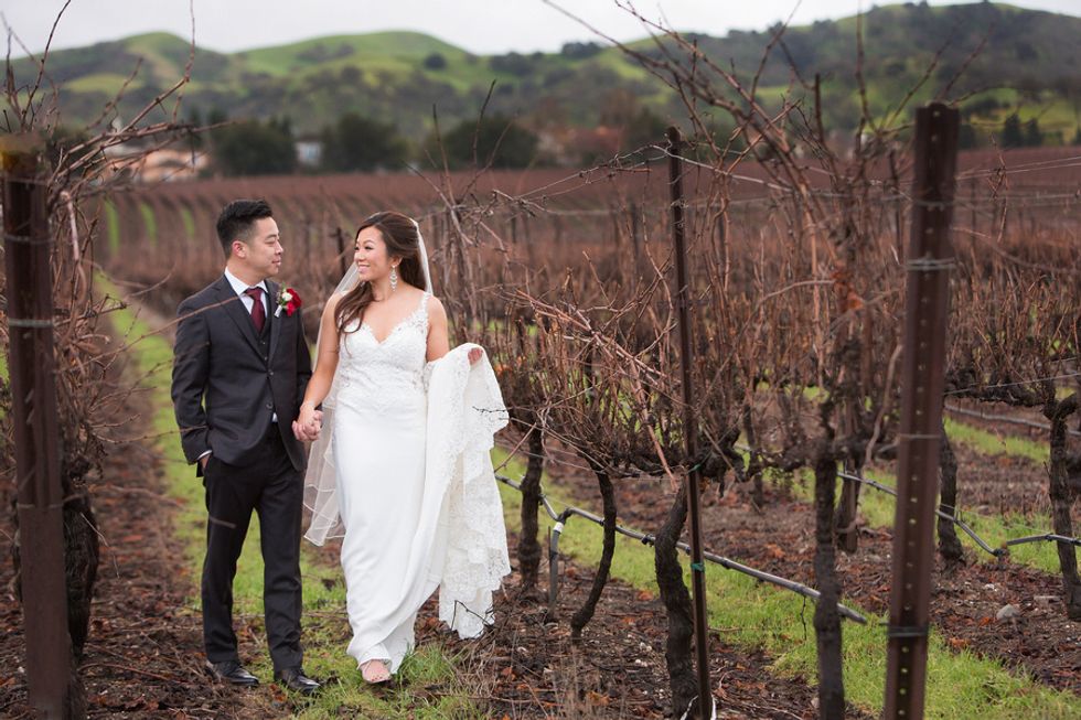 After a misty-eyed greeting at the altar, Jessica Lew and Ryan Tom said their I Dos and went for a photo shoot amidst the vines in Livermore Valley wine country.