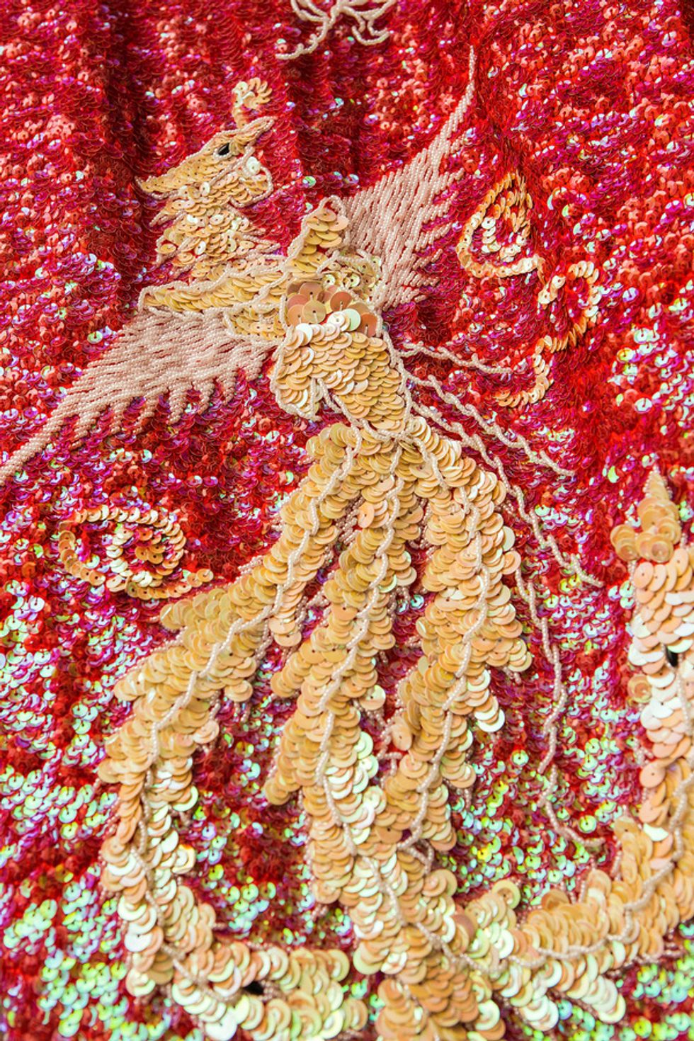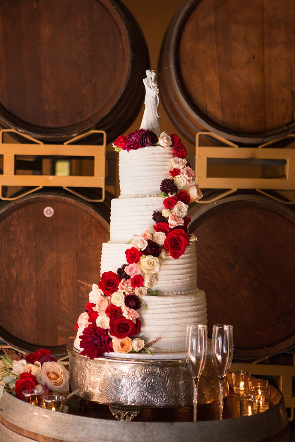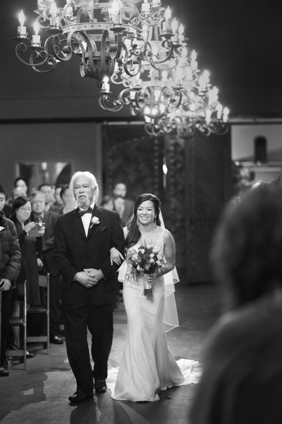 Pleasanton's Palm Event Center provided a beautiful setting for their ceremony and the vineyard an ideal place to snap some pics. Through redwood doors, guests entered the reception to find a churros cart and Jessica wearing an entirely new dress–a Chinese gown with intricate red and gold beading.