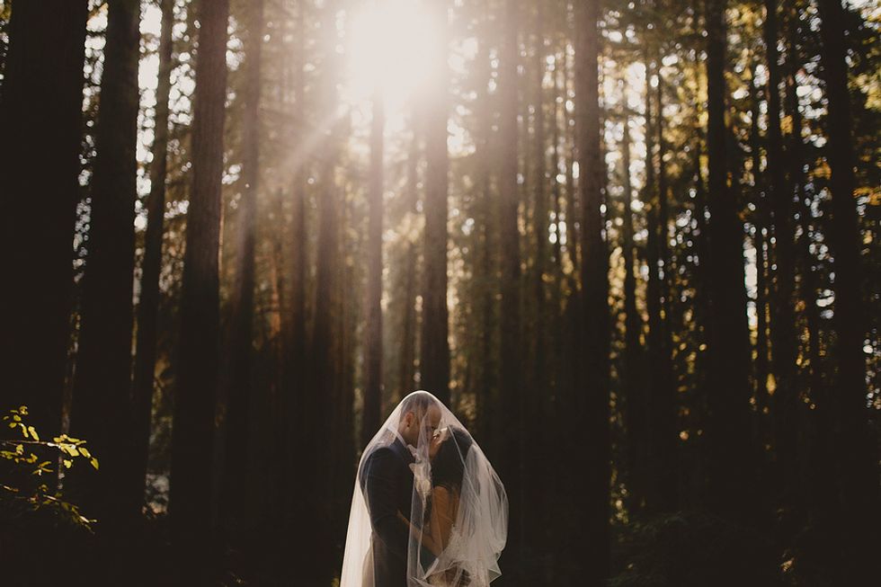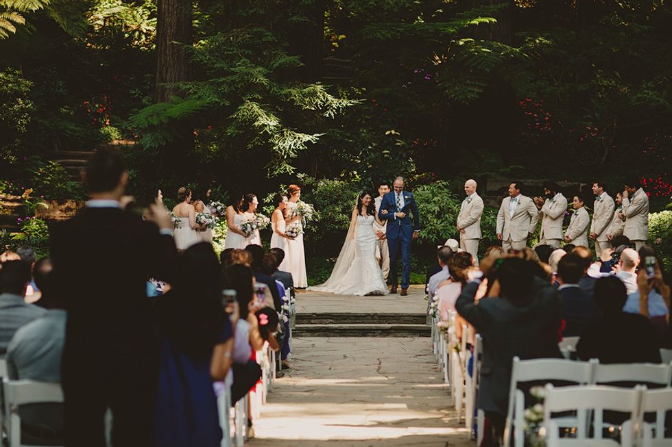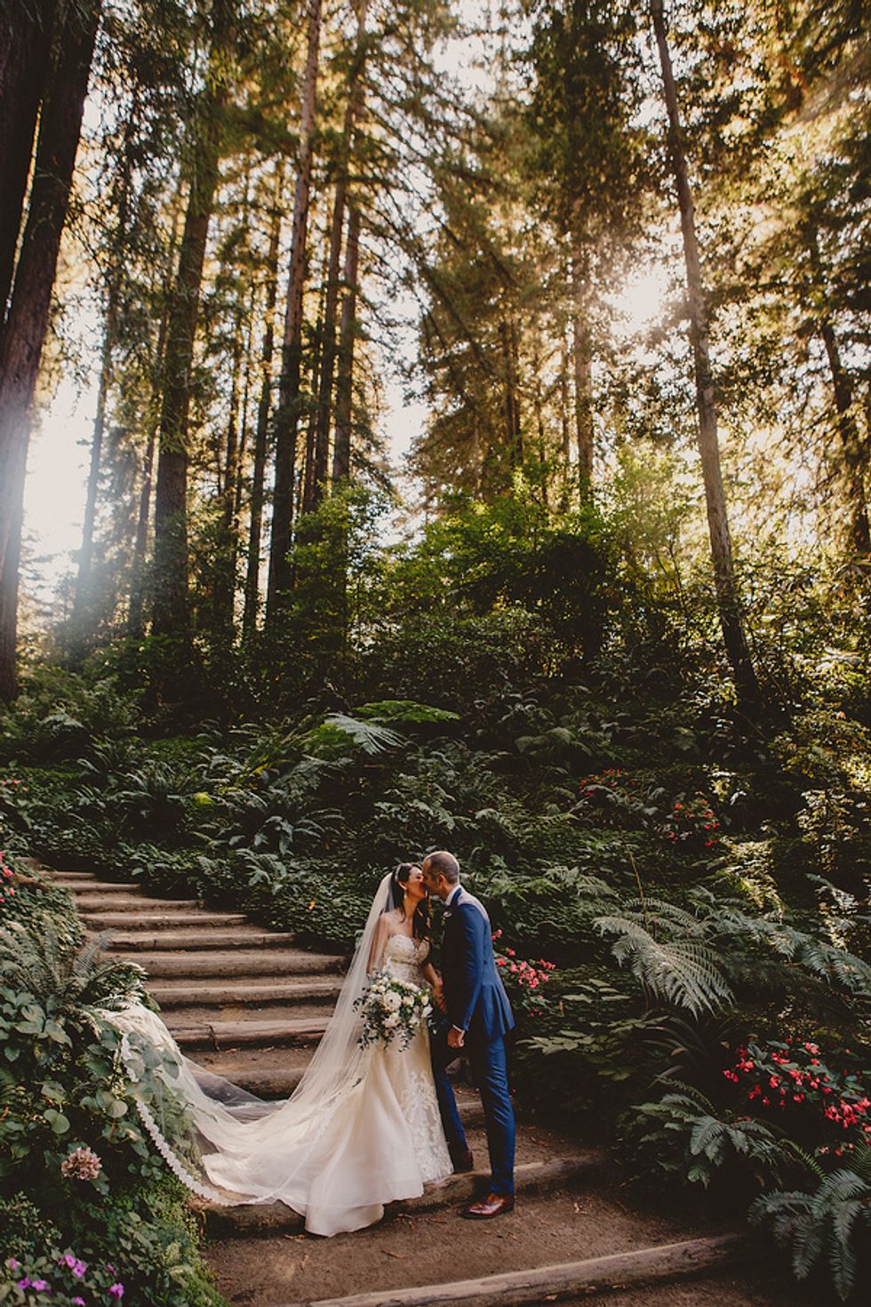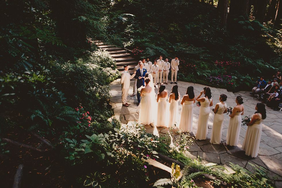 The couple wed at Nestledown, immersed in the stunning wooded landscapes of Los Gatos. Under a canopy of redwoods, in their own private garden, their family and friends gathered to celebrate their love. After the ceremony and reception, the fête continued indoors with music and late-night dancing, reminiscent of their first few nights together.