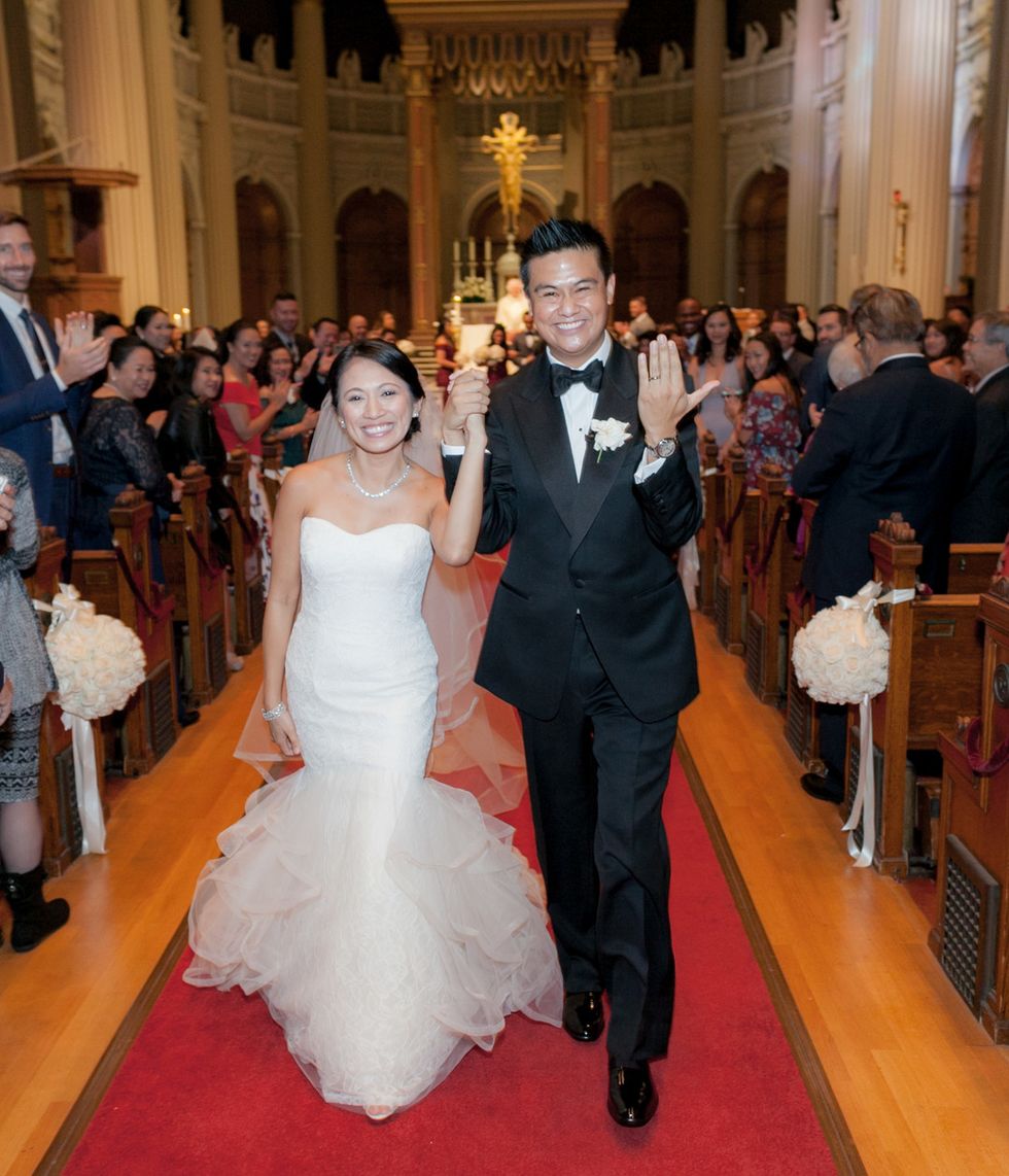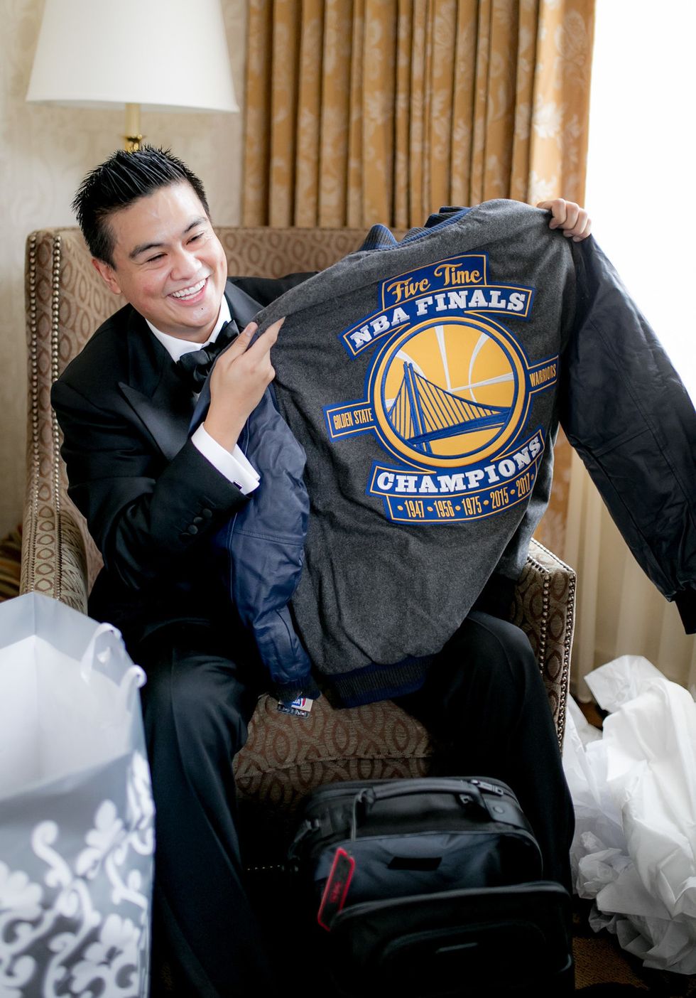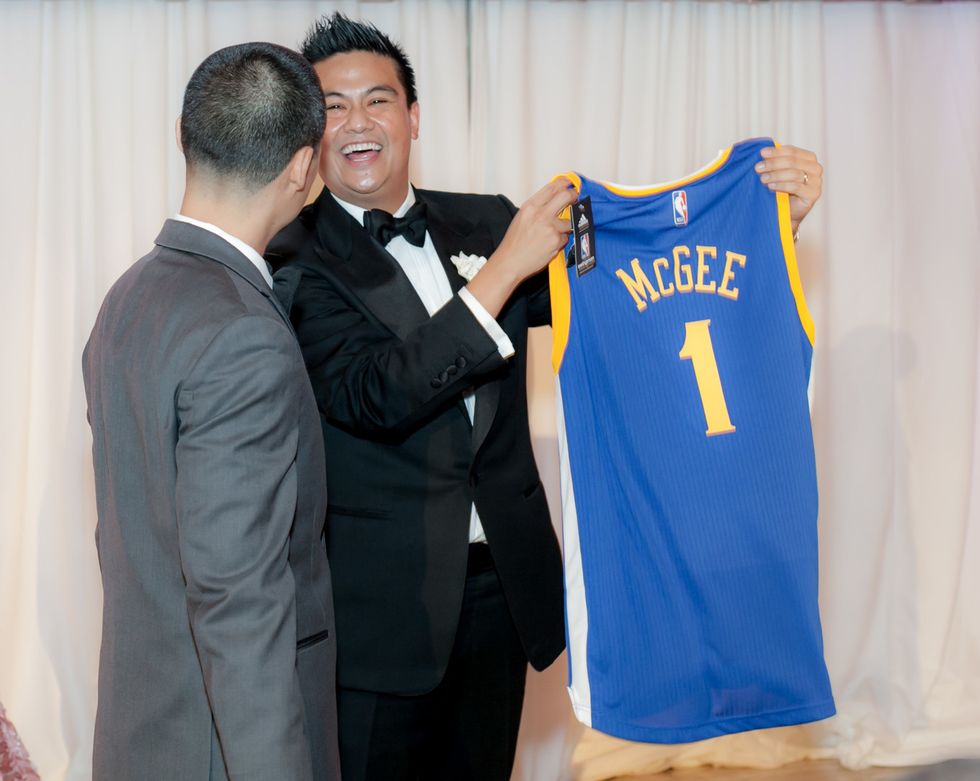 They planned a posh party beginning at San Francisco's Omni Hotel with primping—the bride wore Vera Wang, the groom donned Tom Ford—and a gift exchange—video games for her, and a Warriors jacket for him (Almeda is a die-hard Golden State memorabilia collector and attends at least 50 games each season).