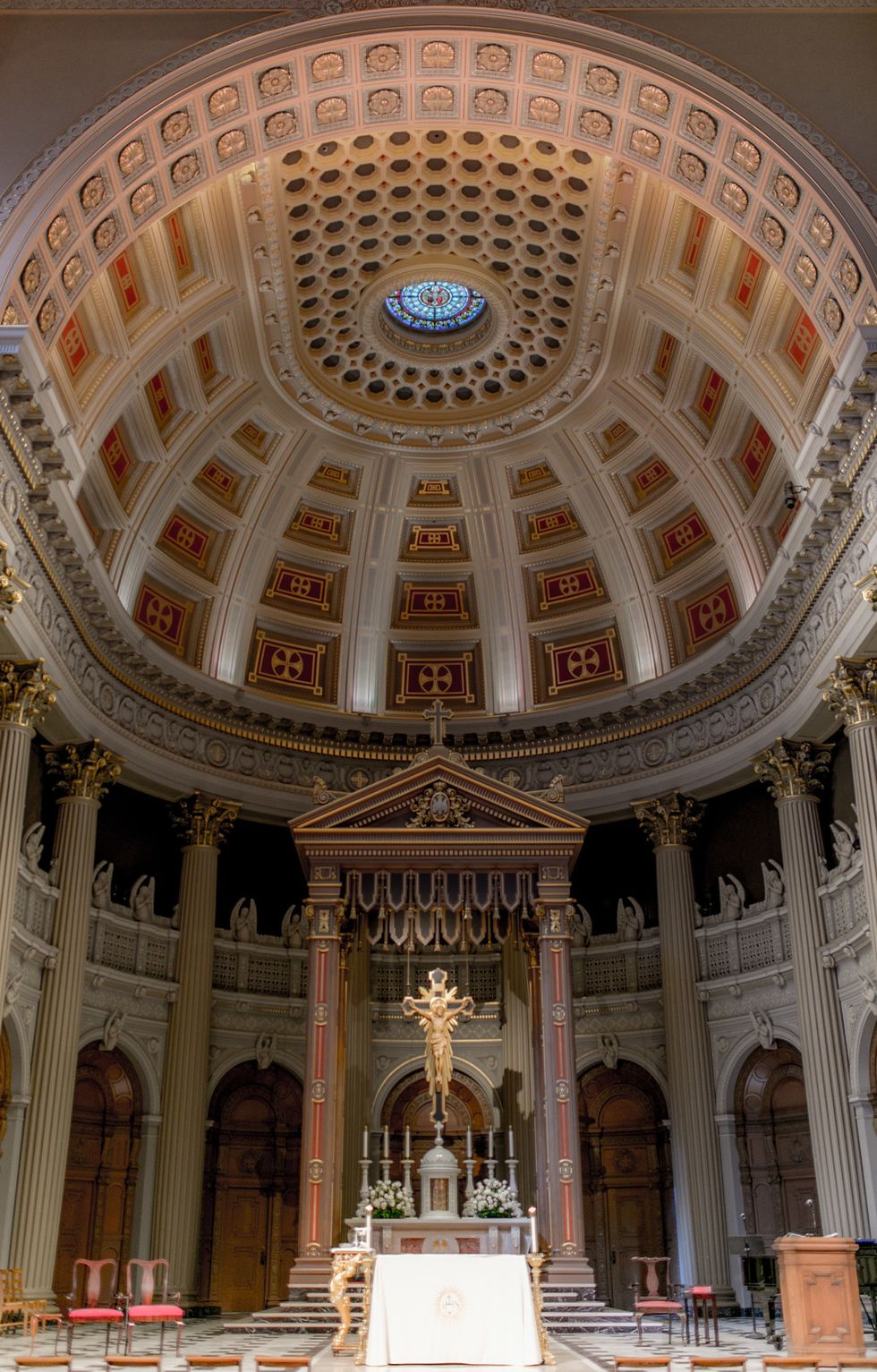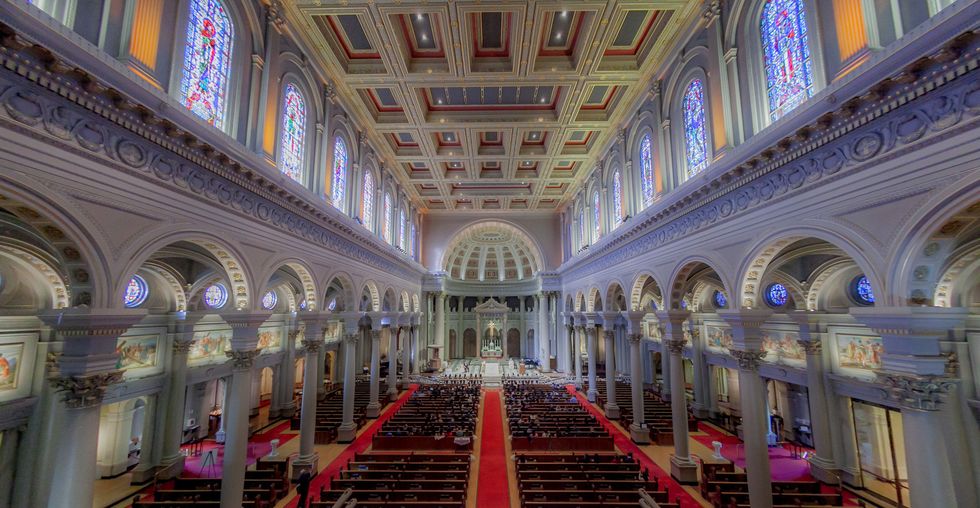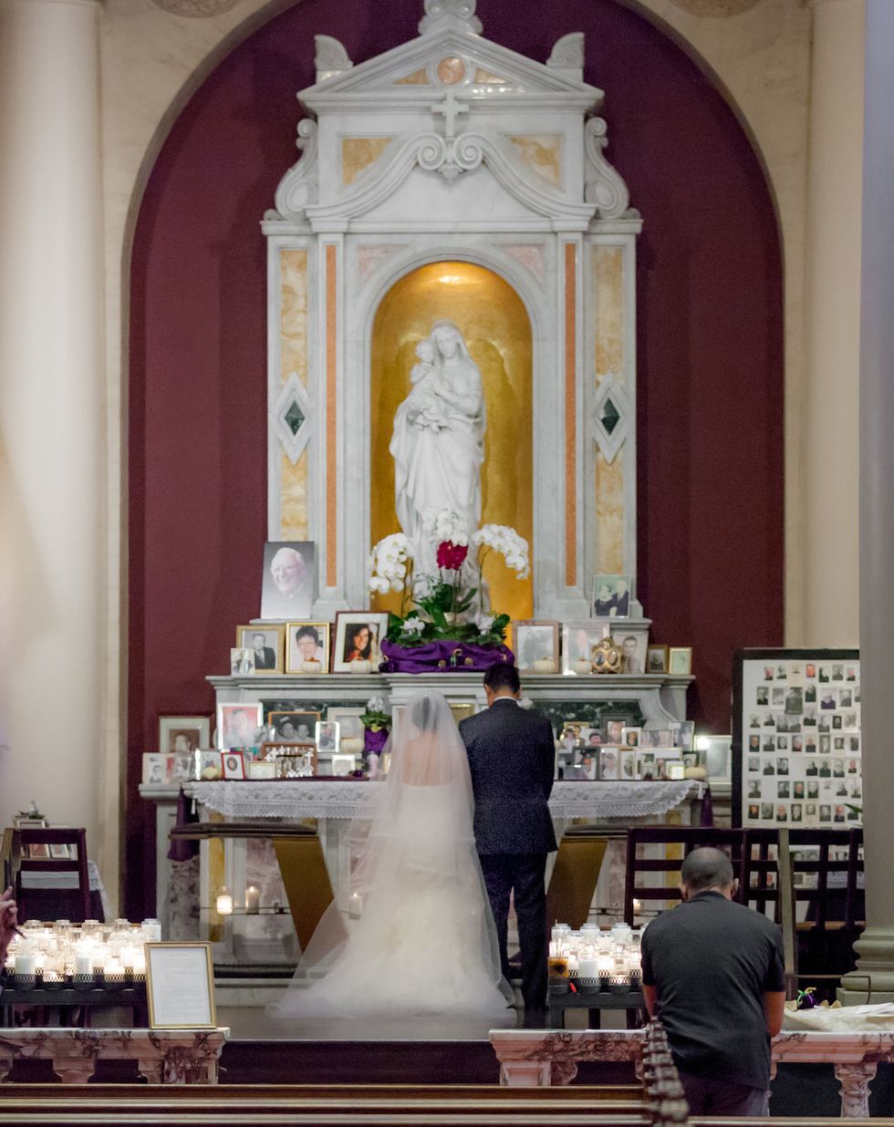 The action junkies shared a regal ceremony at USF's ornate Saint Ignatius Church alongside bridesmaids swathed in flowing crimson gowns and groomsmen in grey suits and black ties.