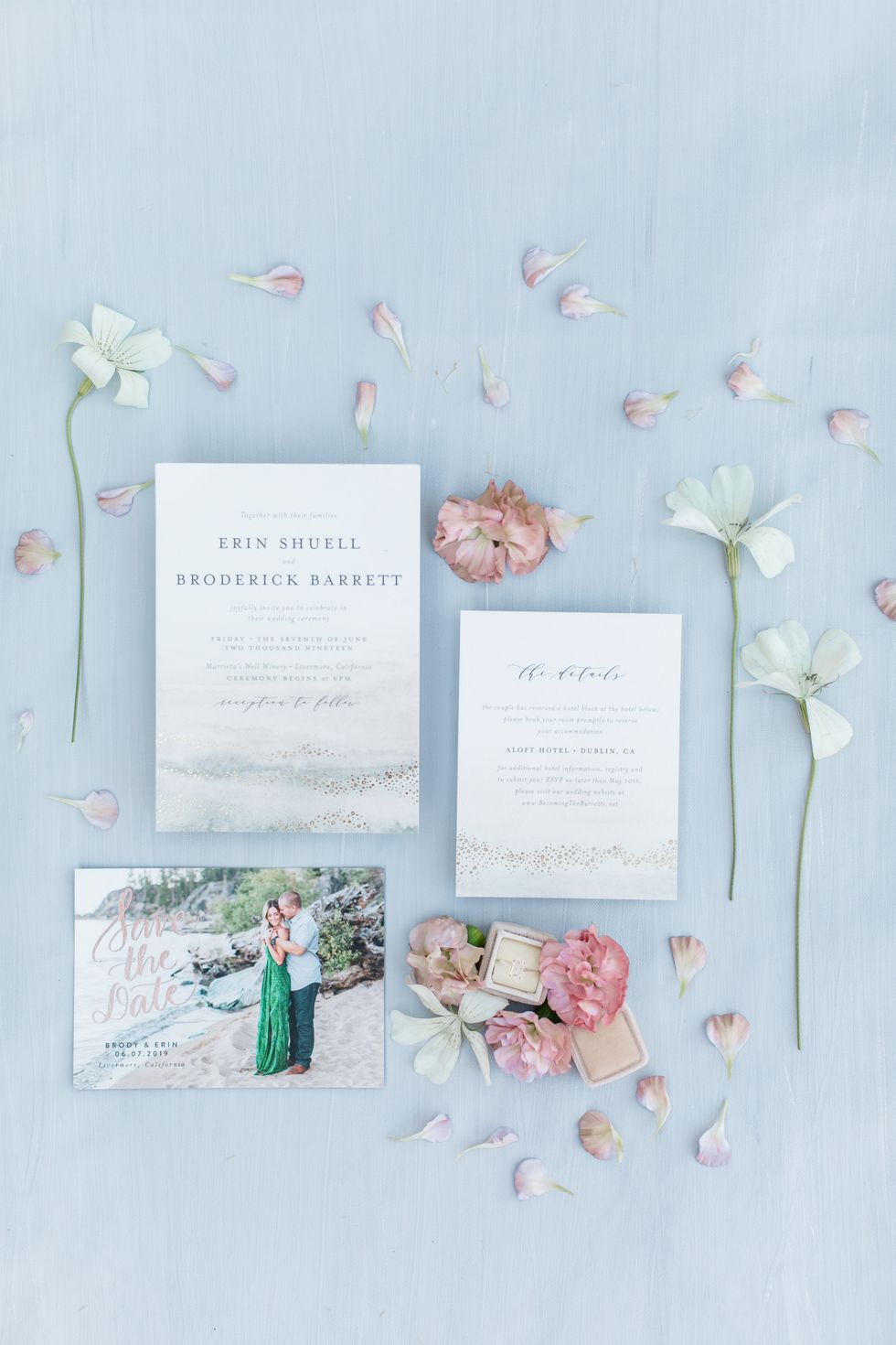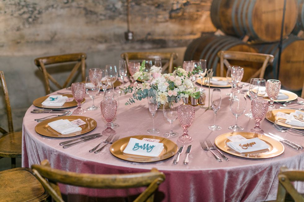 More than 10 years later, while the couple was wine tasting with family and friends at Domaine Carneros in Napa, Brody got down on one knee, a grand gesture that was somewhat unexpected. "Brody is very private," says Erin, who never imagined such a public display. The day would inspire the feeling for their eventual wedding day: "We wanted our wedding to feel feminine, relaxed, and romantic."