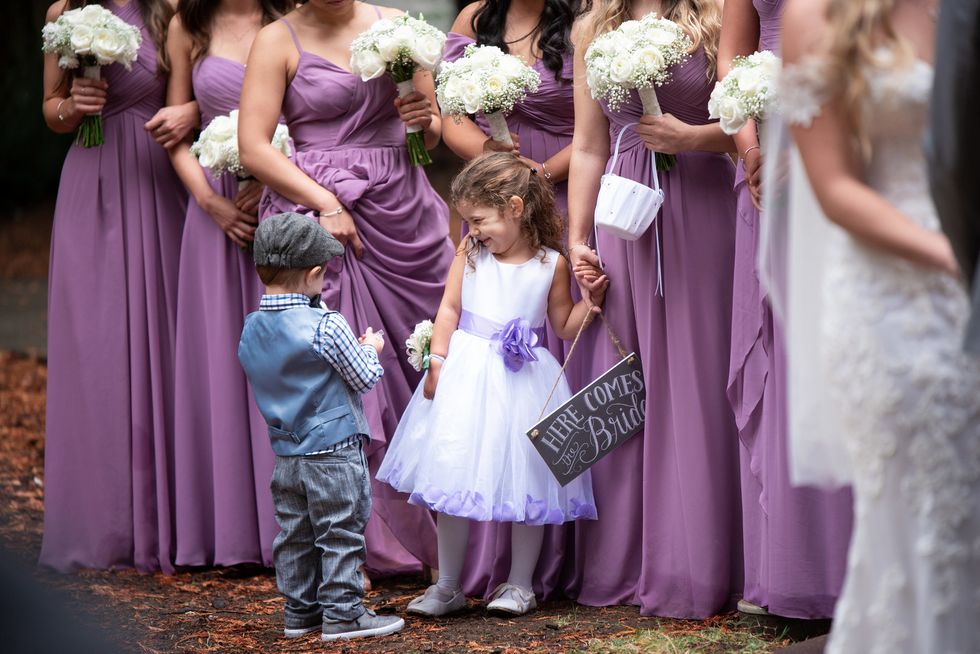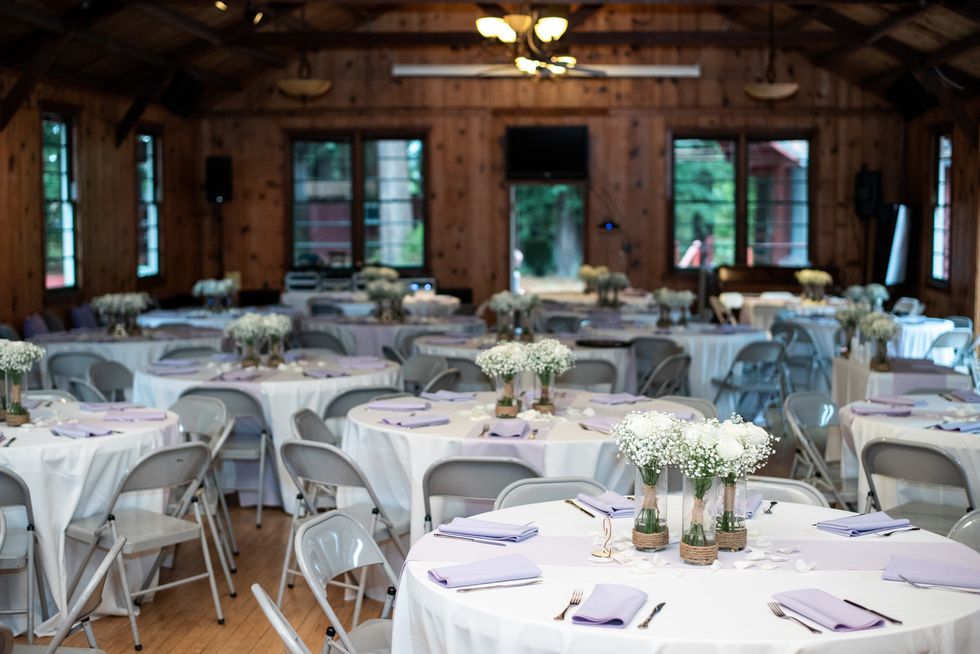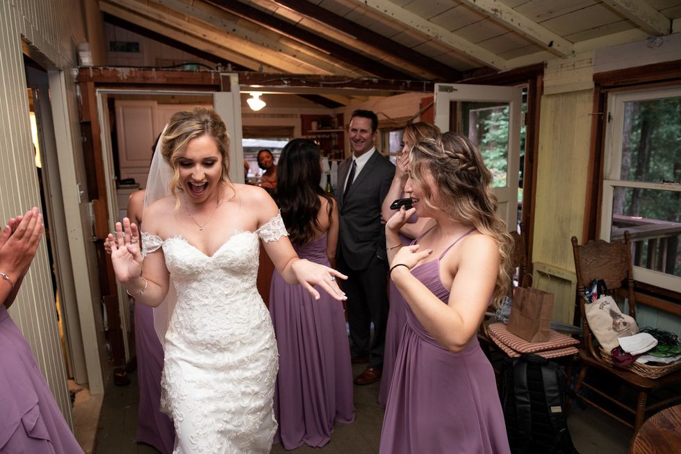 Letting the venue speak for itself, they kept it low key with the addition of pastel florals in lavender, white, and cream with a touch of foliage to pair with the canopy of trees that surrounded them. "We are very simple people and didn't want anything too flashy—just kept it light," says Patsy. Billowing curtains framed the ceremony gazebo, held back by a lilac sash, which was echoed throughout the wedding from the bridesmaid dresses to bouquets, the able linens and reception lighting. As the couple walked back down the aisle, loved ones blew bubbles in their honor.