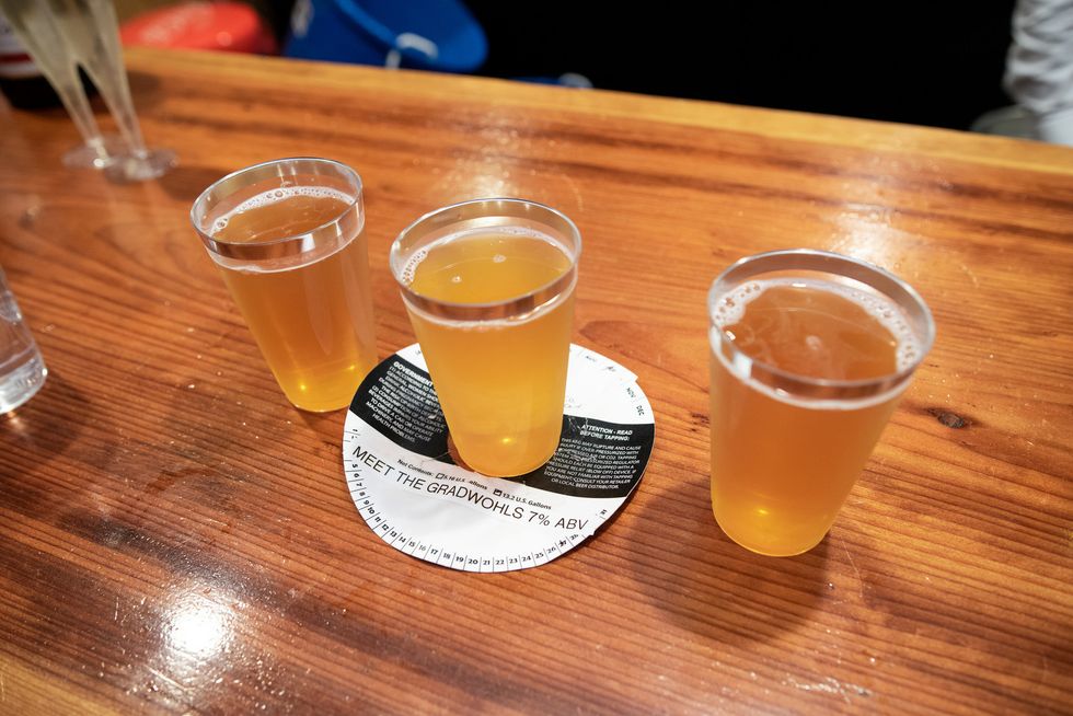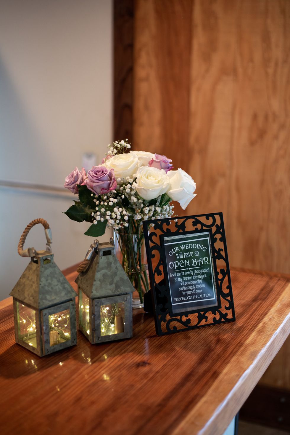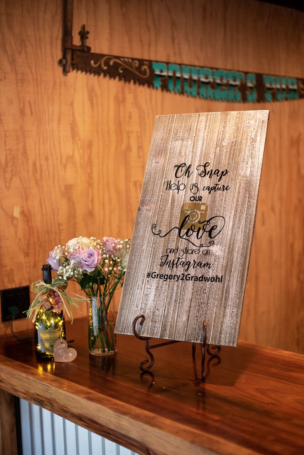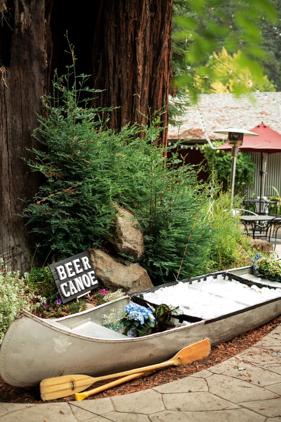 And then party began. In an homage to their campground venue on the river, a canoe was filled with ice and custom-brewed IPAs named "Meet the Gradwohl's." Vintage frames and country florals hung from the trees for pretty photo ops and lanterns dotted the tables. A video booth allowed their friends and family to share stories and advice for posterity.