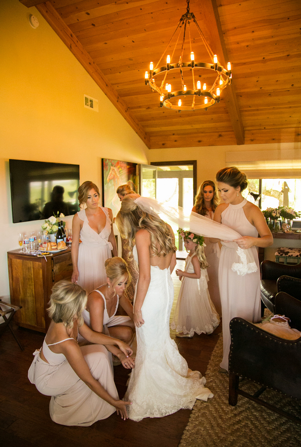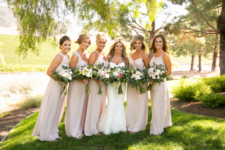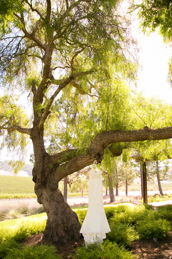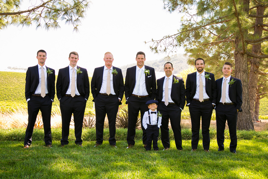 Lindsay and Bobby said their I Do's al fresco at San Luis Obispo's Greengate Ranch & Vineyard, and the weather was perfect for their lakeside ceremony. Simple adornments decorated the altar and dining tables, each with their own green flourish.