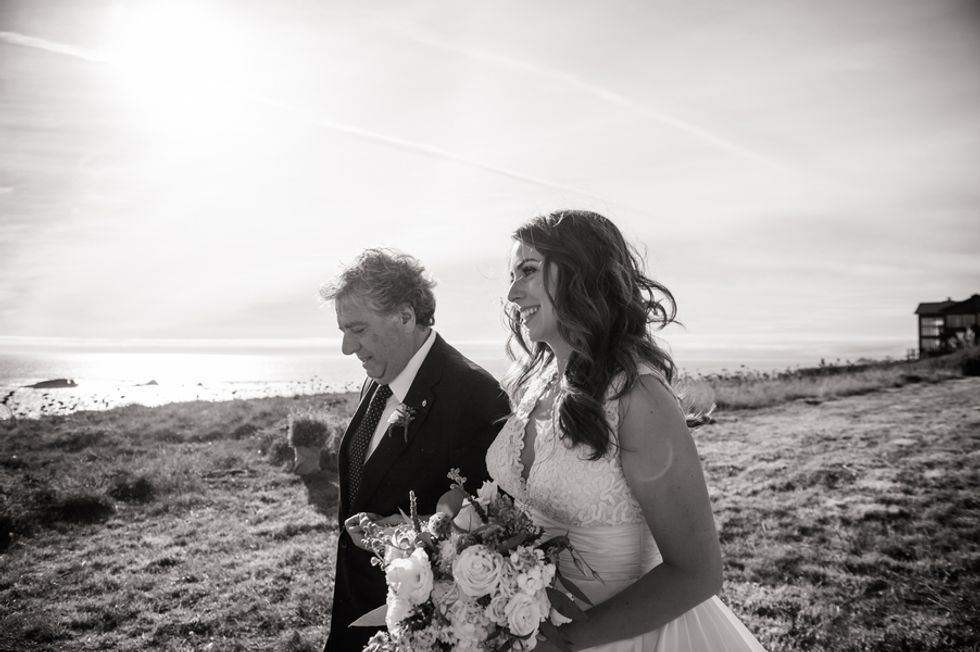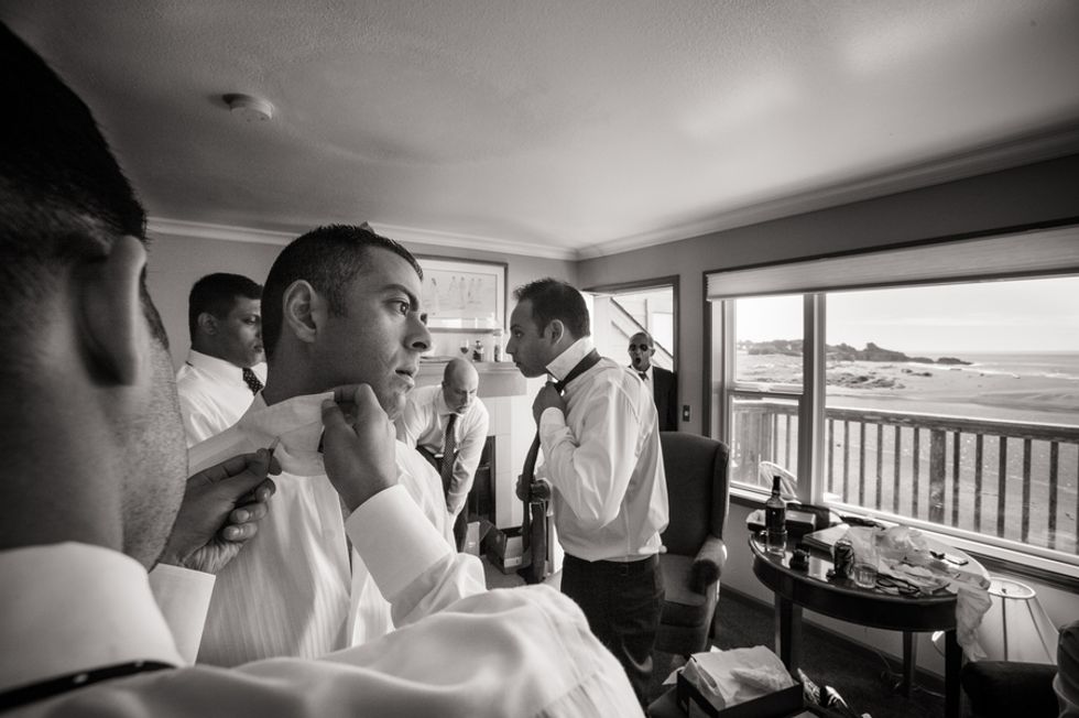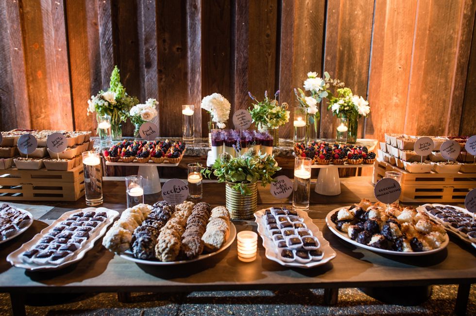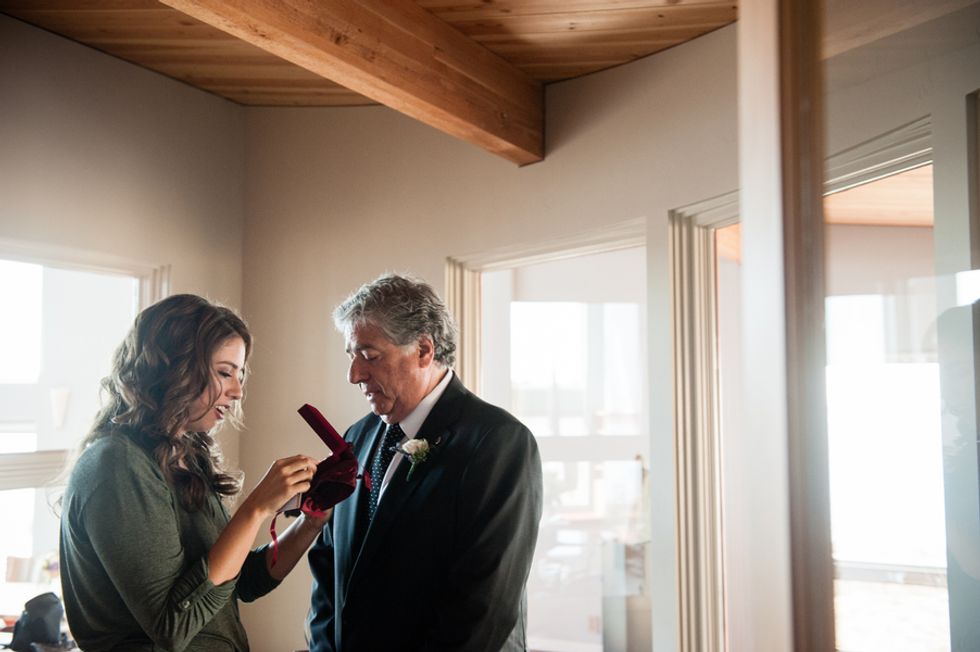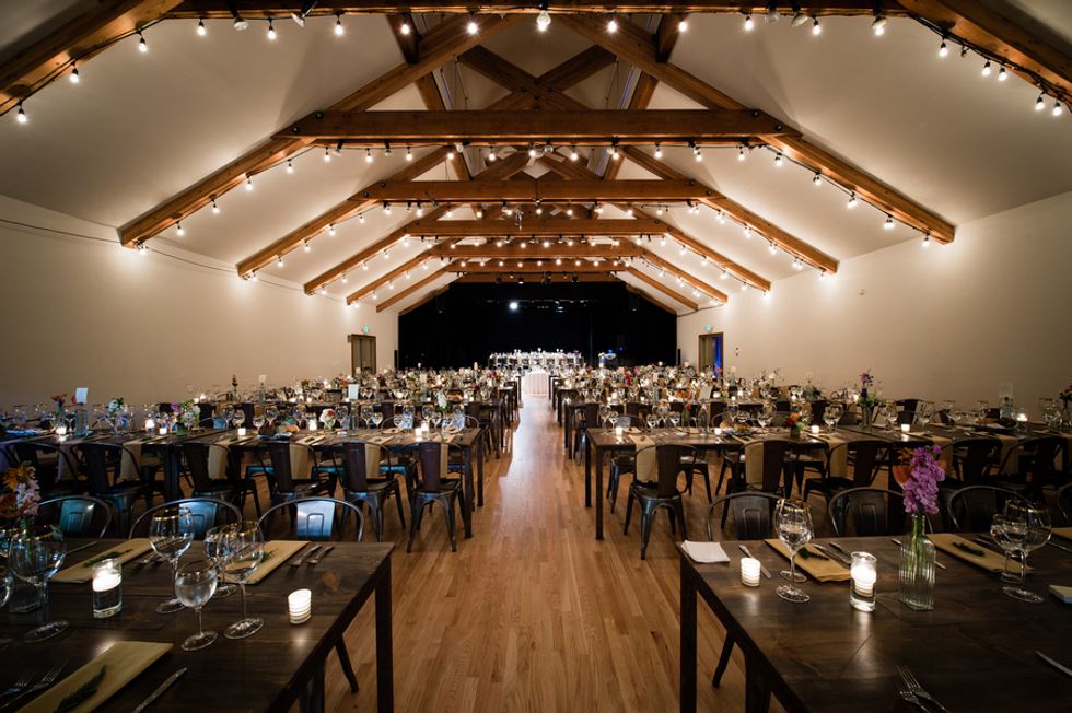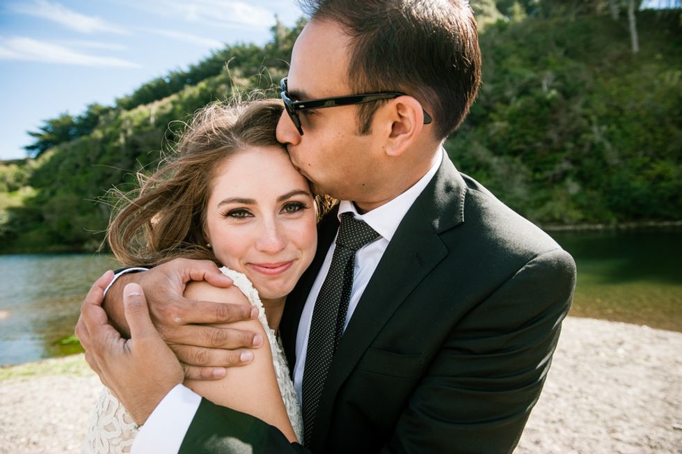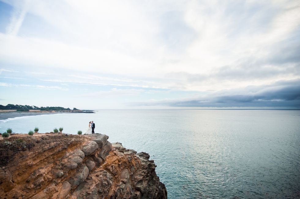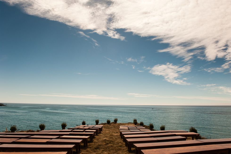 The picturesque ceremony, on a cliff overlooking the deep blue waters of the Mendocino coastline, was a gorgeous showcase of the couple's love. The simple and woodsy Gualala Arts Center hosted a reception filled with laughter, friends, and family. Handwritten descriptions of their journey together adorned the tables as sparkling lights hung from the ceiling.
