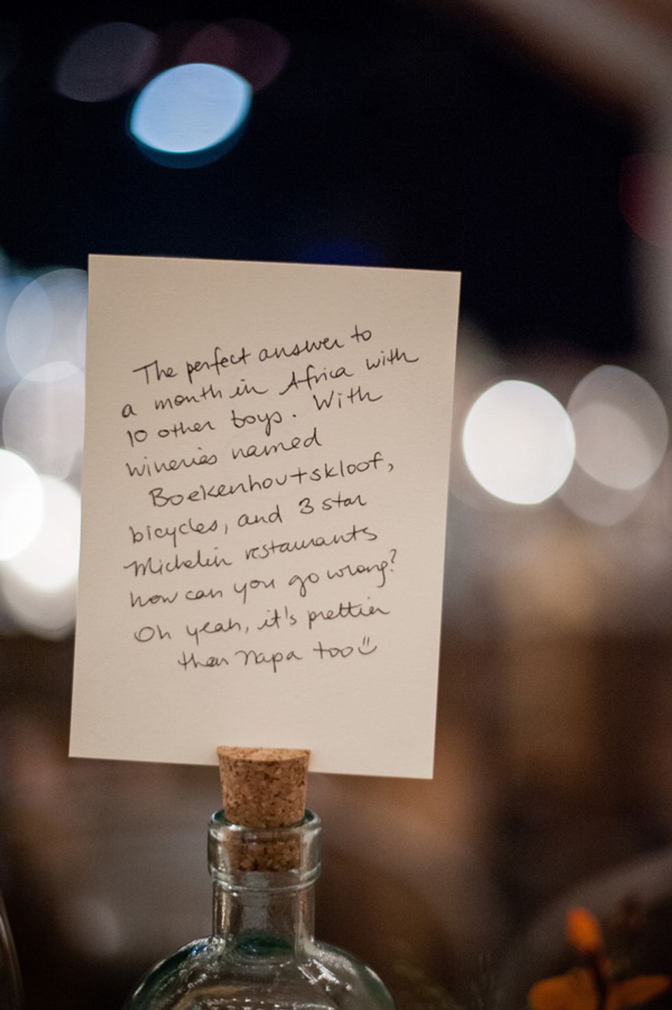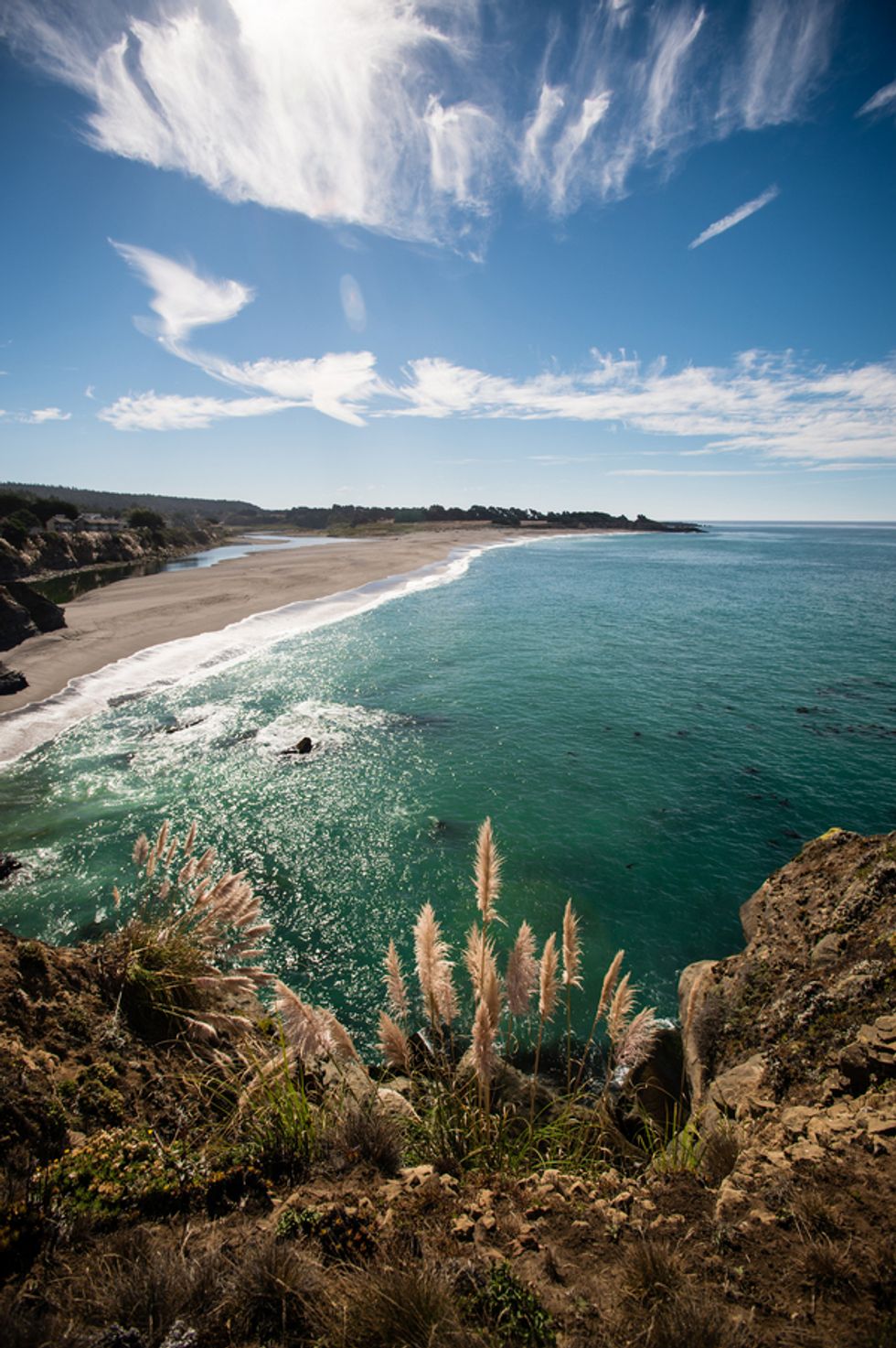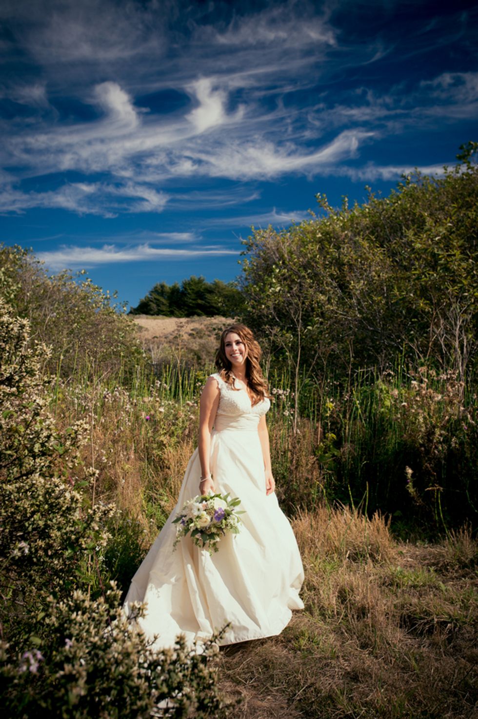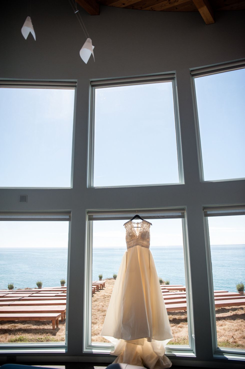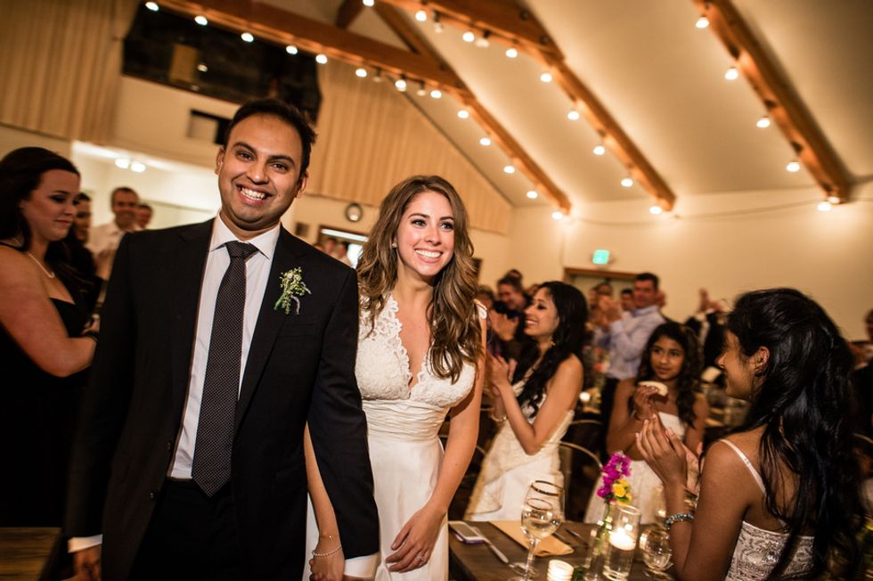 The picturesque ceremony, on a cliff overlooking the deep blue waters of the Mendocino coastline, was a gorgeous showcase of the couple's love. The simple and woodsy Gualala Arts Center hosted a reception filled with laughter, friends, and family. Handwritten descriptions of their journey together adorned the tables as sparkling lights hung from the ceiling.