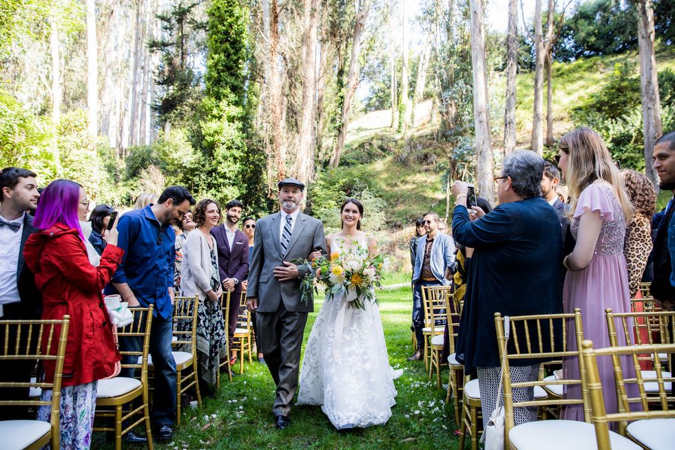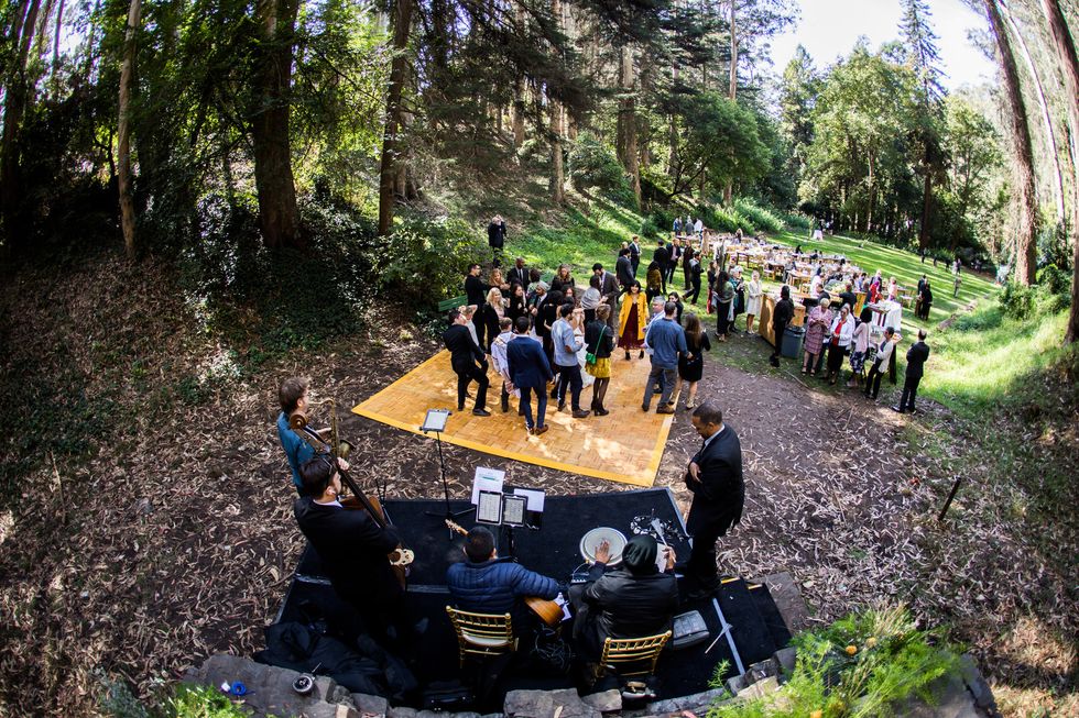 It was crucial for them to really feel good about all aspects of their big day, so they selected a venue that supported the SF Parks Department, employed local organic food growers and sellers, as well as women-owned, POC-owned, and immigrant-owned businesses. They couldn't have amplified music during the ceremony or reception but wanted to dance so they worked with their band to put together an entirely acoustic ensemble and Motown-based playlist that kept everyone on the dance floor after brunch.