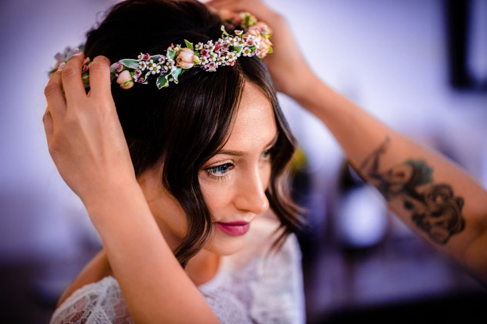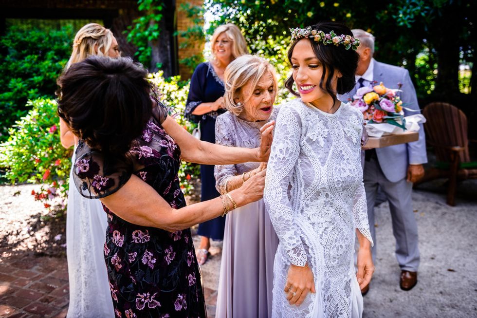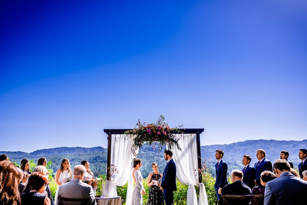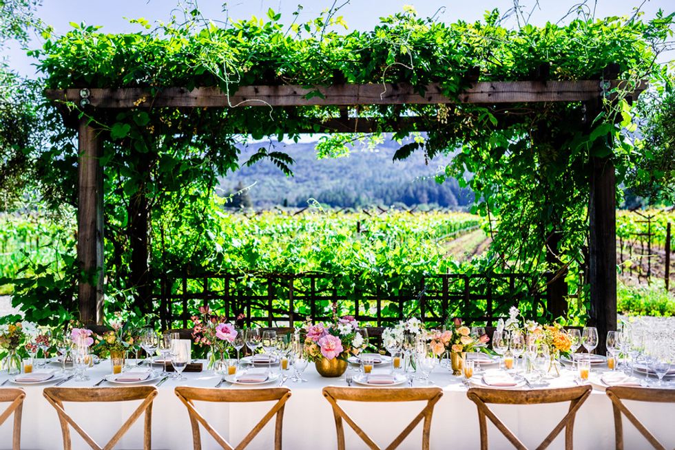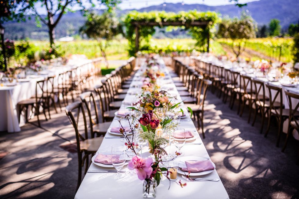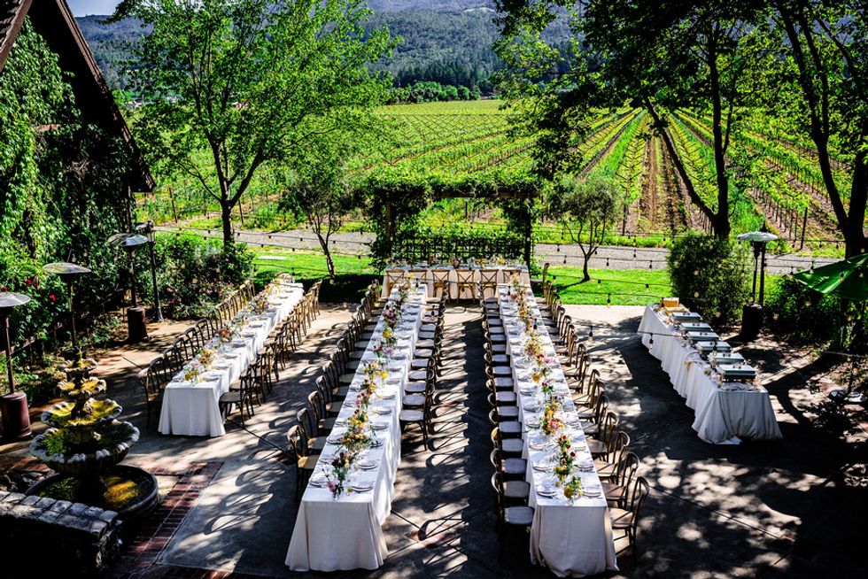 Is there anything better than love and vino? Dominique Lindsen and Alex Reison knew they wanted a relaxed and carefree celebration as breezy as a day of wine tasting. It only made sense that the two decided on a romantic destination wedding at the charming Harvest Inn by Charlie Palmer in the heart of Napa Valley. Amid the smell of fresh grass and flowers with a glorious backdrop of mountains and vineyards, the two got ready for the big day with their respective parties, laughing all the way. Dominique spent the morning with her wedding party in their suite, while the boys played soccer with beers on the inn's luscious lawns.