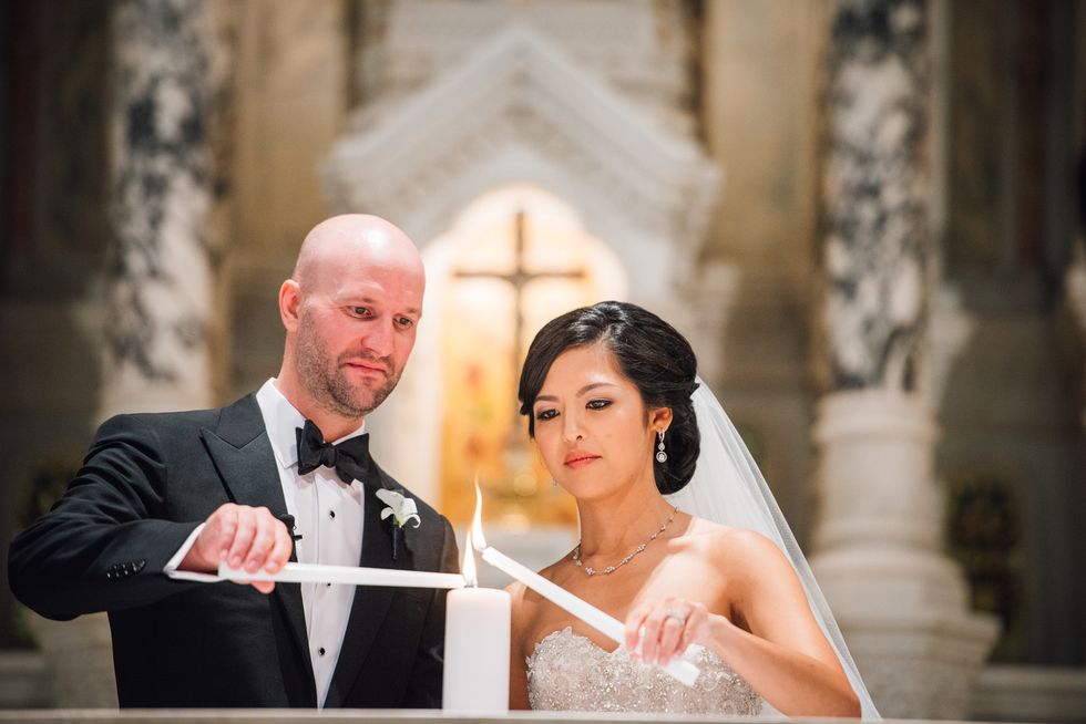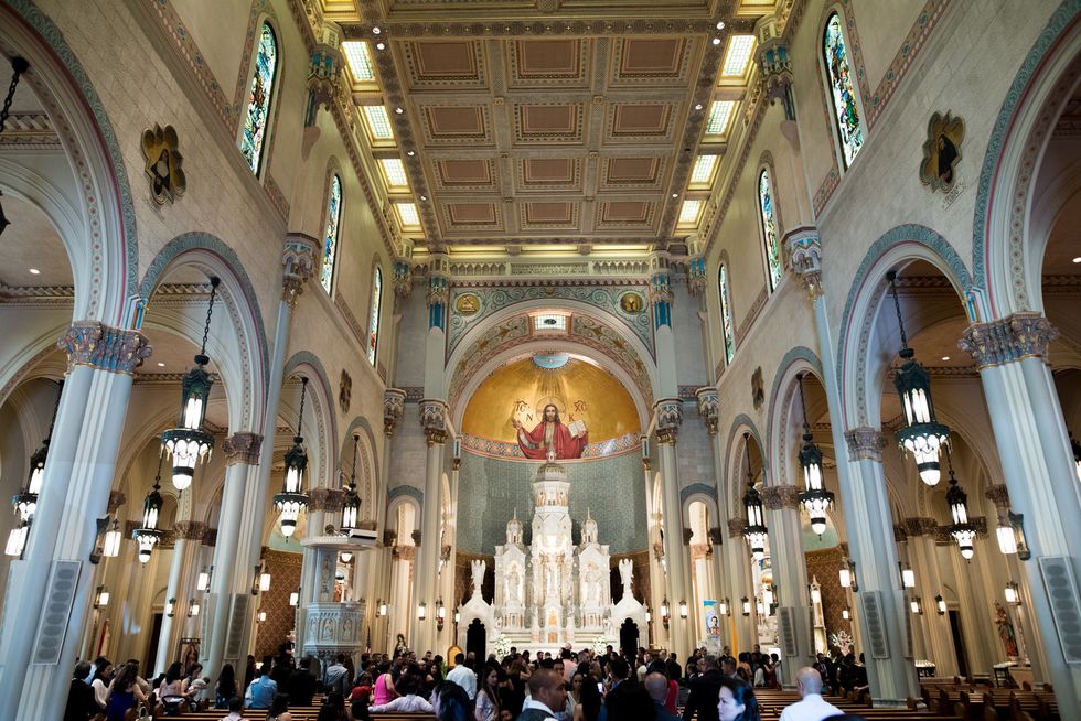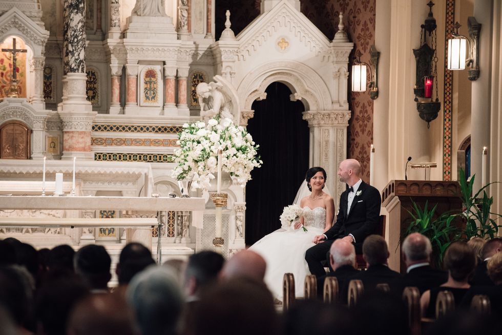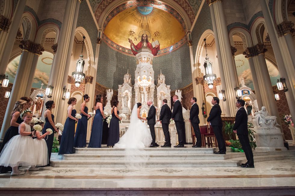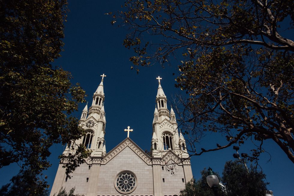 The towering steeples, ornate marble statuary, soaring ceilings and archways of North Beach's Saints Peter and Paul Church . set the scene for the formal Catholic ceremony, made all the more lyrical with a performance of traditional hymns by the Golden Gate Boys' Choir.
